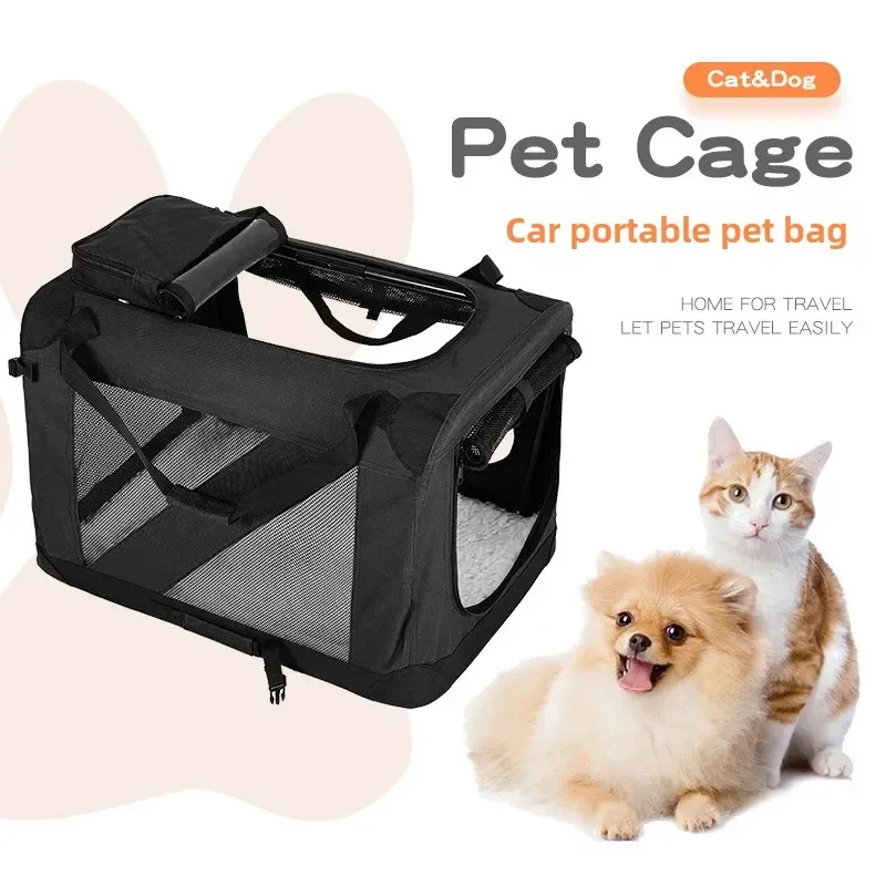 Bolsa plegable de hombro portátil para mascotas, bolsa de viaje portátil de malla transpirable para coche, suministros para gatos y perros, transportador para mascotas