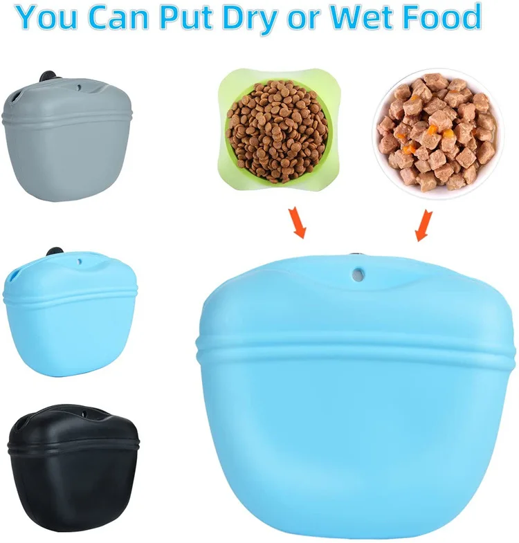Bolsa portátil para entrenamiento de perros, riñonera con clip magnético y bolsillo de silicona para alimentos para recompensas de obediencia y agilidad