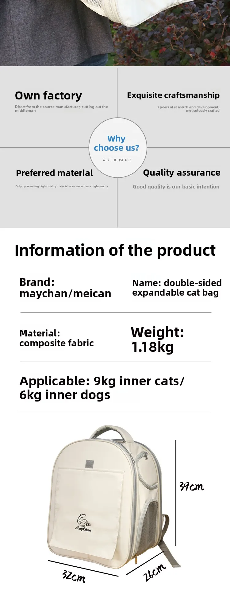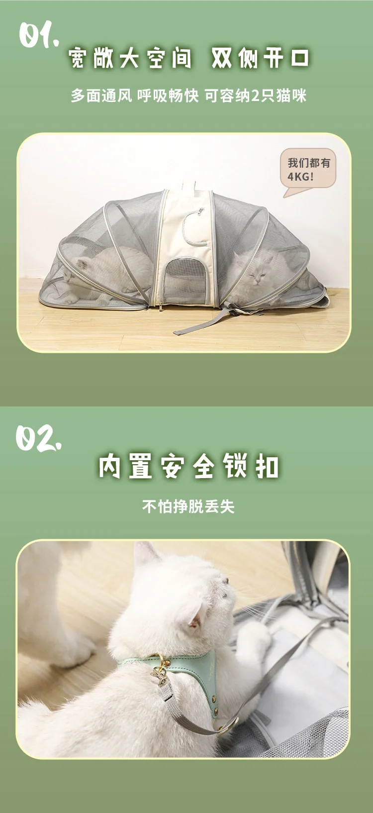 Bolsa portátil para gatos, mochila para salir, gran capacidad, transpirable, antiestrés, bolsa para perros, expansión Bilateral, mochila para salir de mascotas