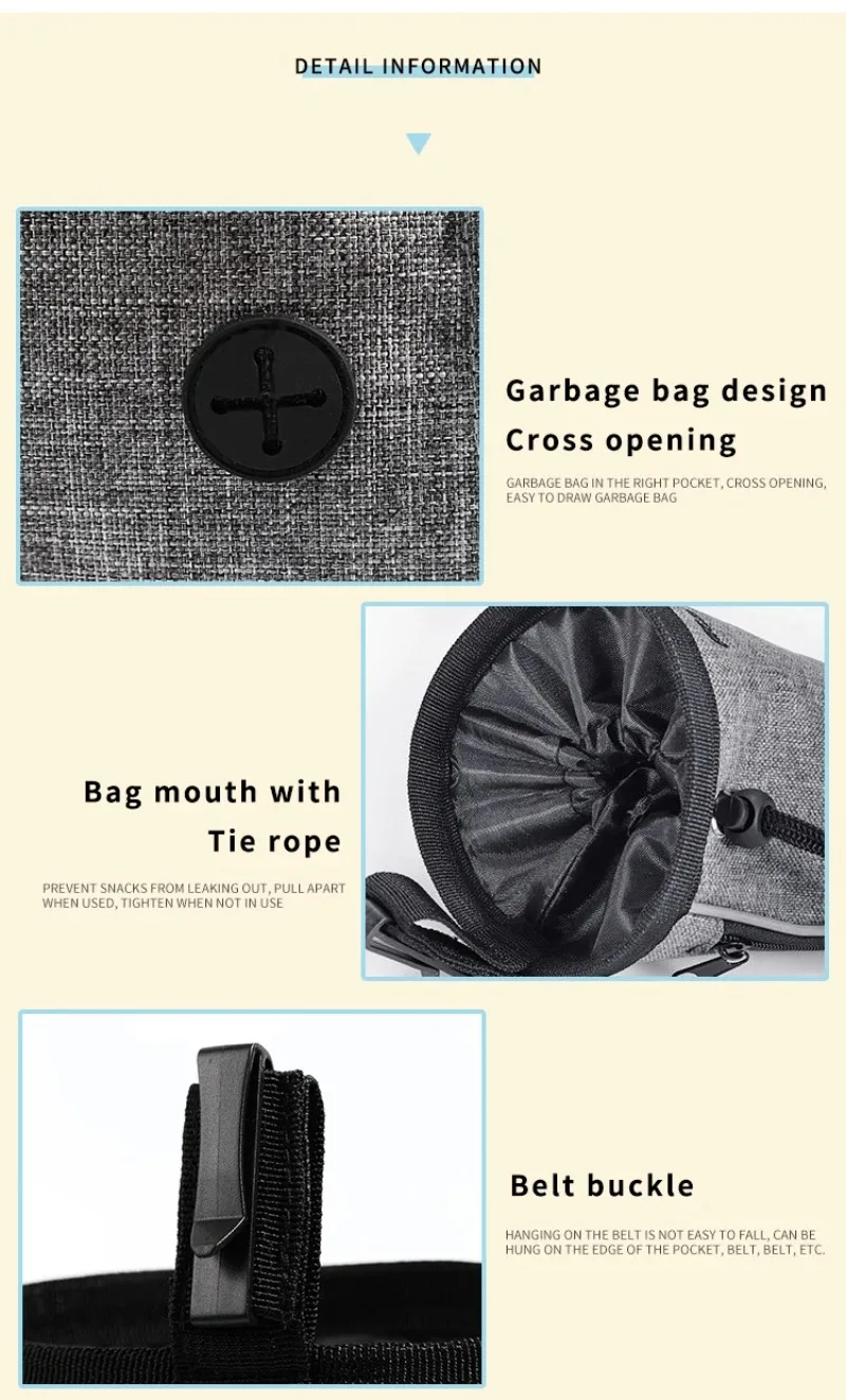1. Diseño de bolsillo de basura, el bolsillo lateral derecho contiene una bolsa de basura, apertura cruzada, fácil de sacar la bolsa de basura