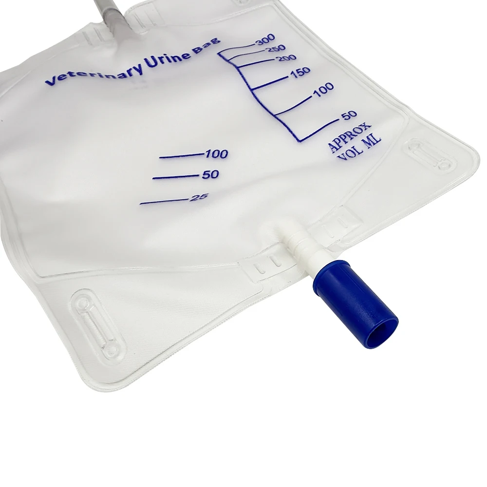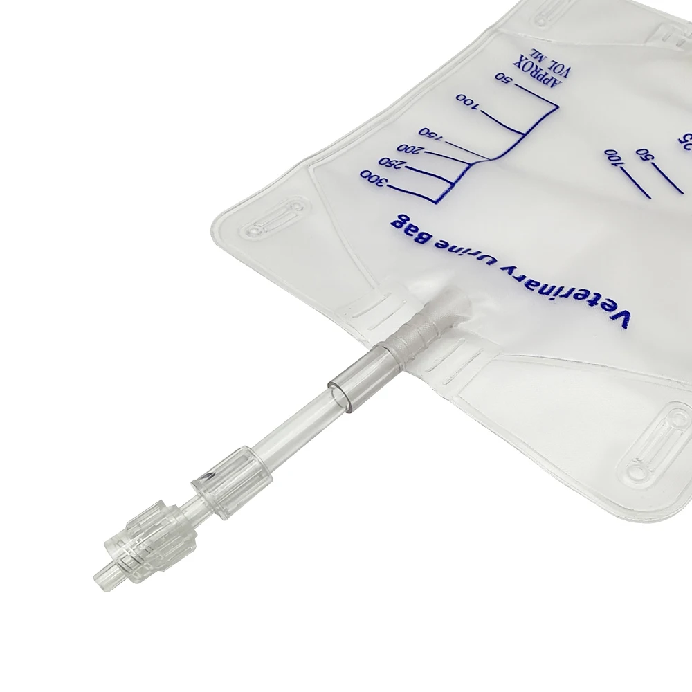 Bolsa de recogida de drenaje de orina para perro y gato, bloqueo Luer con tubo de extensión, Correa colgante, drenaje antireflujo, 300ml