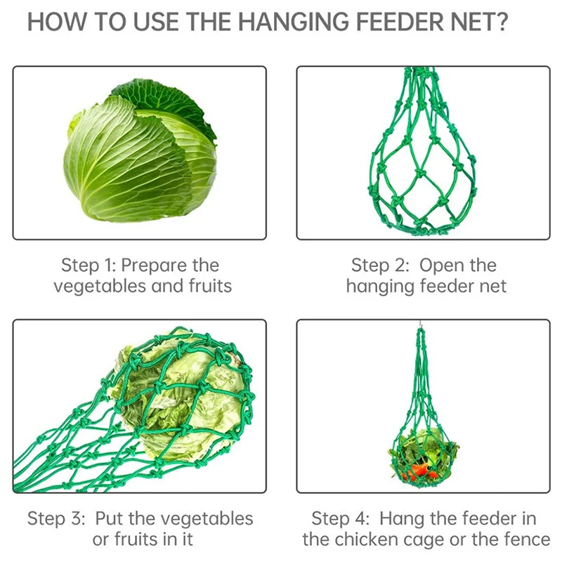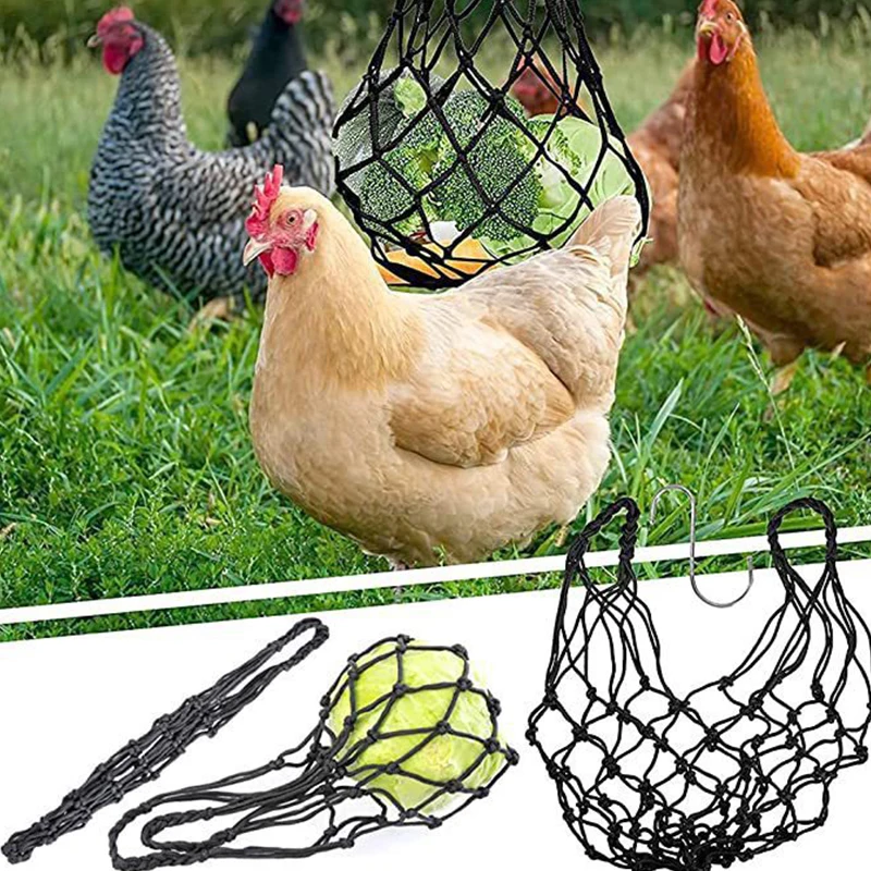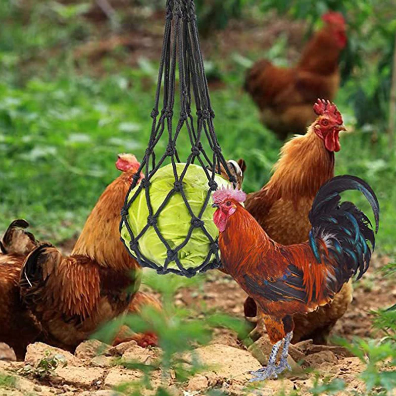 Bolsa de red para verduras y pollos, soporte para frutas y aves de corral, alimentador de repollo, herramienta de alimentación para Gallina, ganso, pájaros grandes, casa de pollos