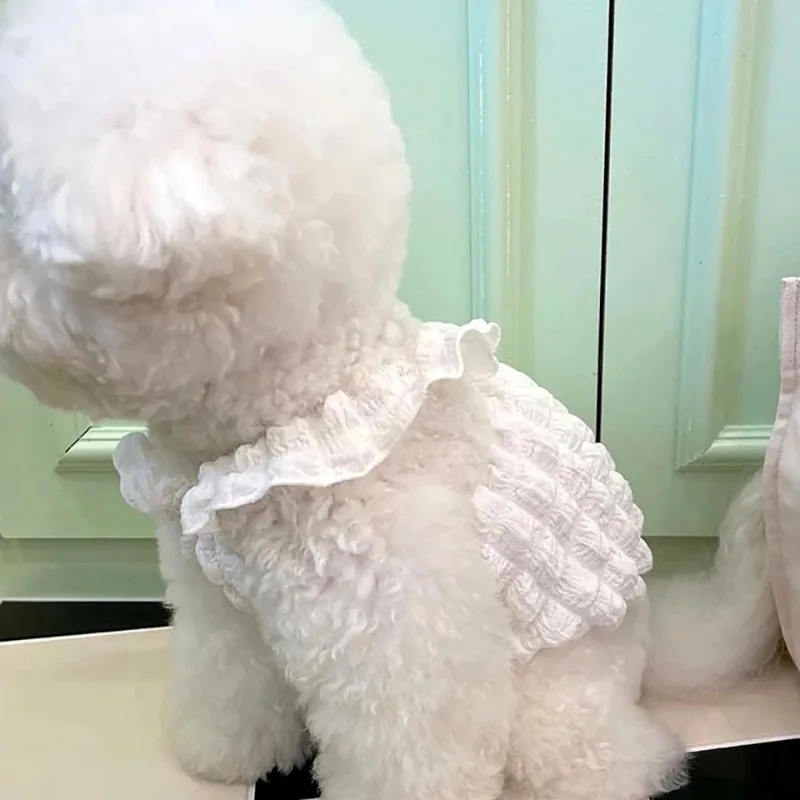 Sin bolsa, ropa para perros de Color macarrón a la moda, chaleco con refuerzo de burbujas de peluche de verano, ropa transpirable para cachorros, vestido, camisola de Color sólido