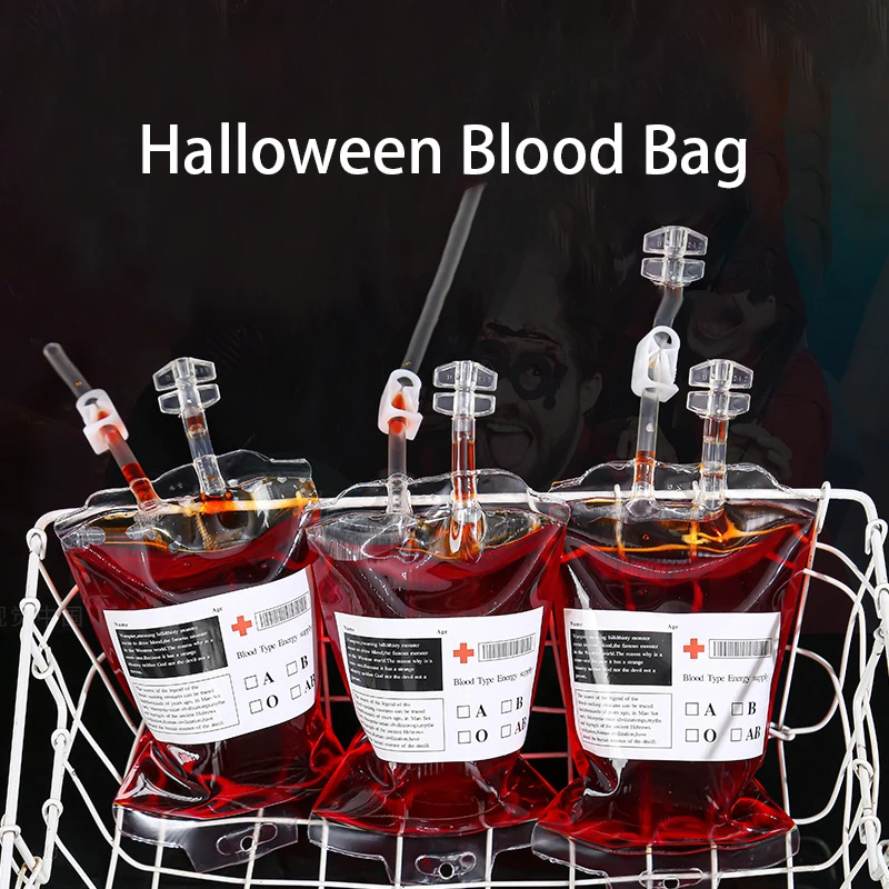 Bolsa de sangre de Halloween de 350ml para bebidas, bolsas de PVC para bebidas, accesorios para fiesta temática de vampiro, accesorios para fiesta de Halloween de terror, 1 Uds.