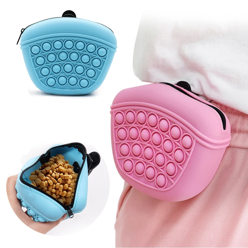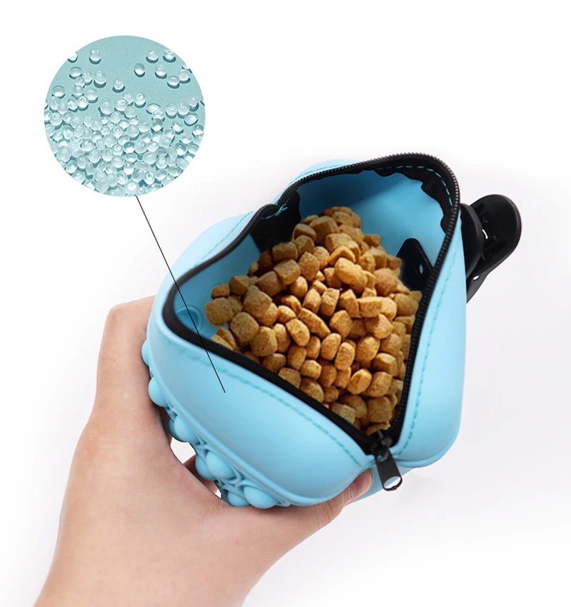 Bolsa de silicona para perro, bolsa de entrenamiento portátil para perro, Correa con Clip para la cintura, alimentador al aire libre, bolsa de almacenamiento para aperitivos para cachorros, suministros para mascotas