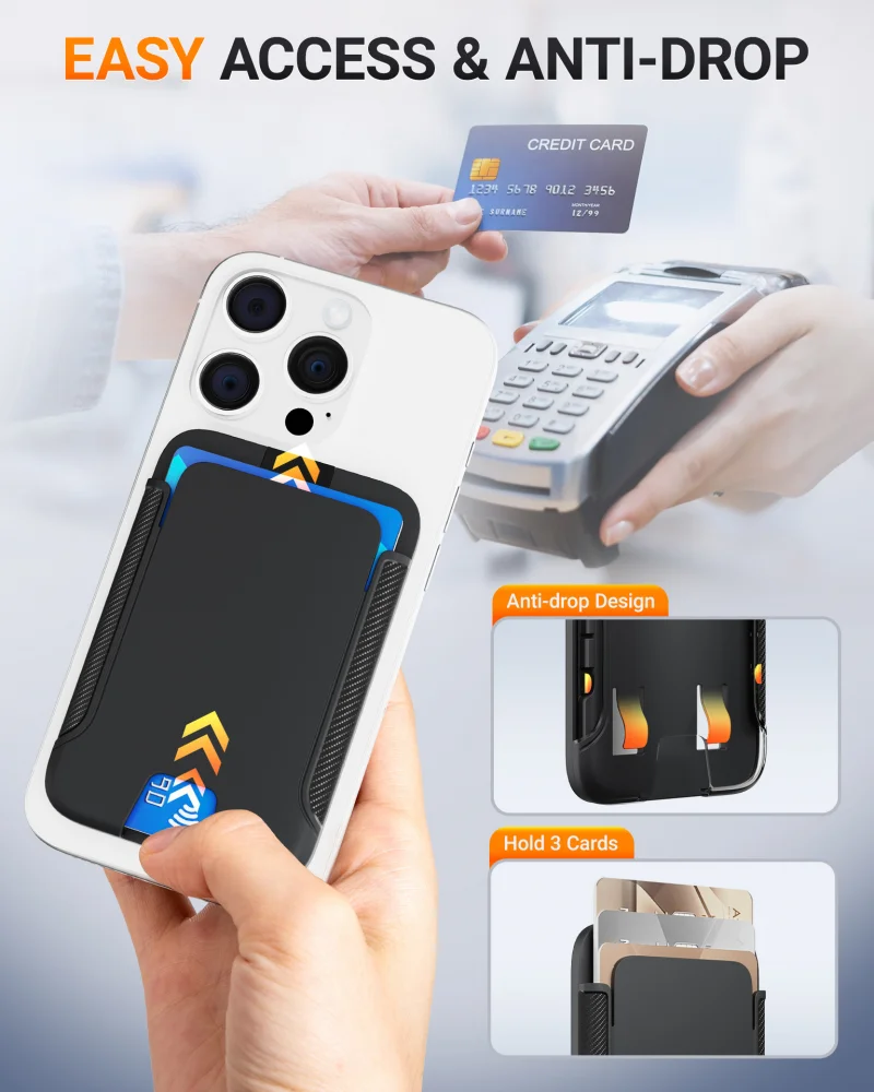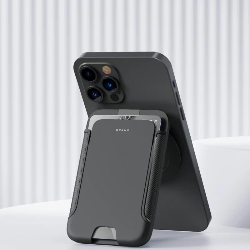 Bolsa para tarjetas magnéticas para iPhone, soporte giratorio 2 en 1 para teléfono, funda con ranuras para tarjetas magnéticas, funda rígida delgada desmontable