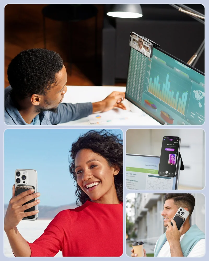 Nombre del producto: para soporte de caja de tarjetas magnético magsafe dos en uno Color: negro Material: ABS + imán Peso bruto por juego: 60g Método de embalaje: en caja Contiene por juego: Caja de tarjetas magnéticas * 1 Magnético * 1