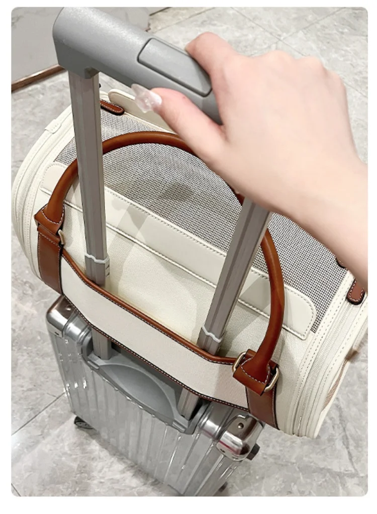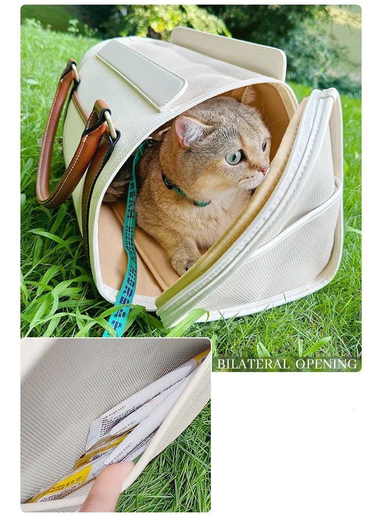 Bolsa transportadora de lona y cuero PU para mascotas, bolso transpirable de cara suave para gatos y perros pequeños, bolso de mano para gatos, transportador plegable para mascotas