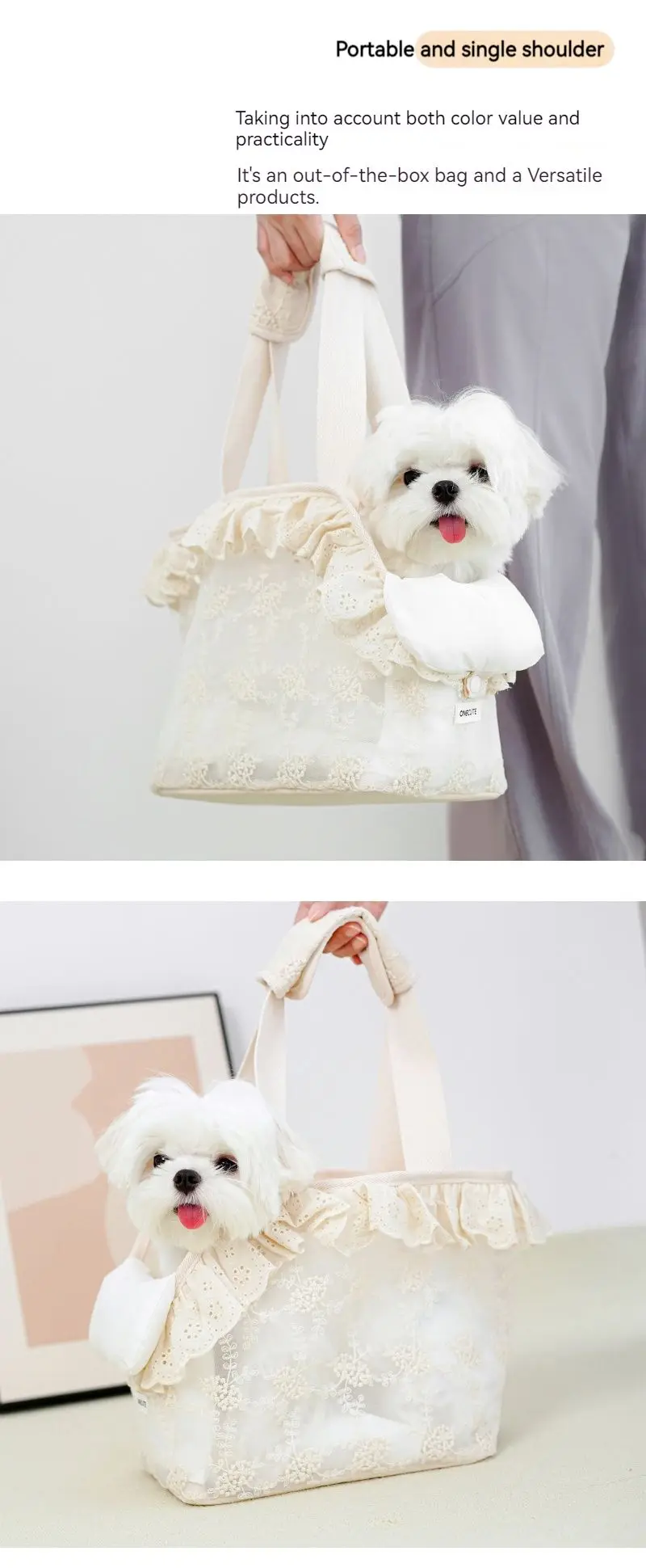 El perro encaja perfectamente. La bolsa en sí es bonita y ligera. ¡Ideal para perros que aún no pueden tocar el suelo!