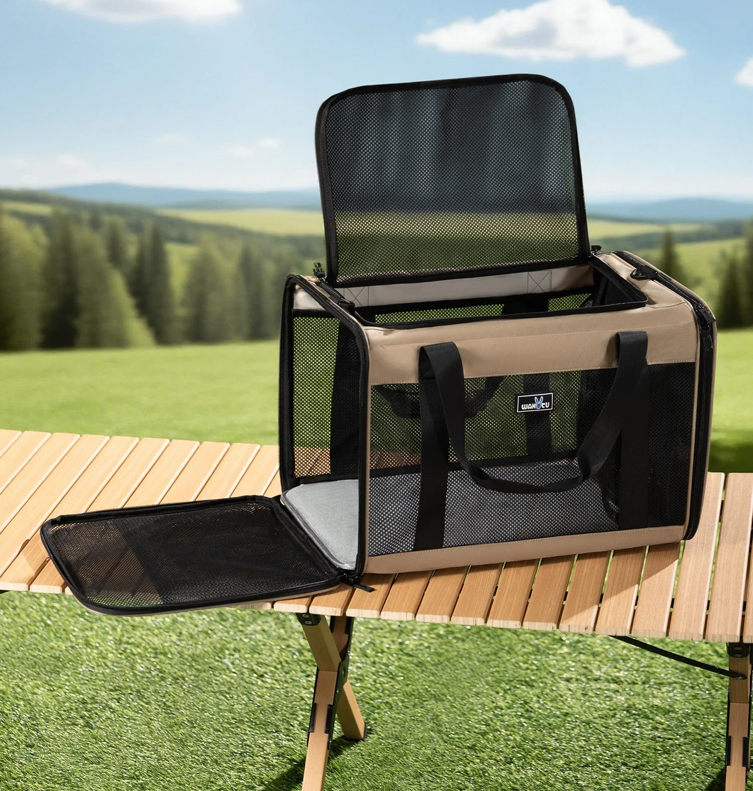 Bolsa transportadora para mascotas expandible, portátil, plegable, para exteriores, bolsa para gatos, bolsa para coche para mascotas, bolsa para mascotas aprobada por aerolínea, transportador para perros de cara suave