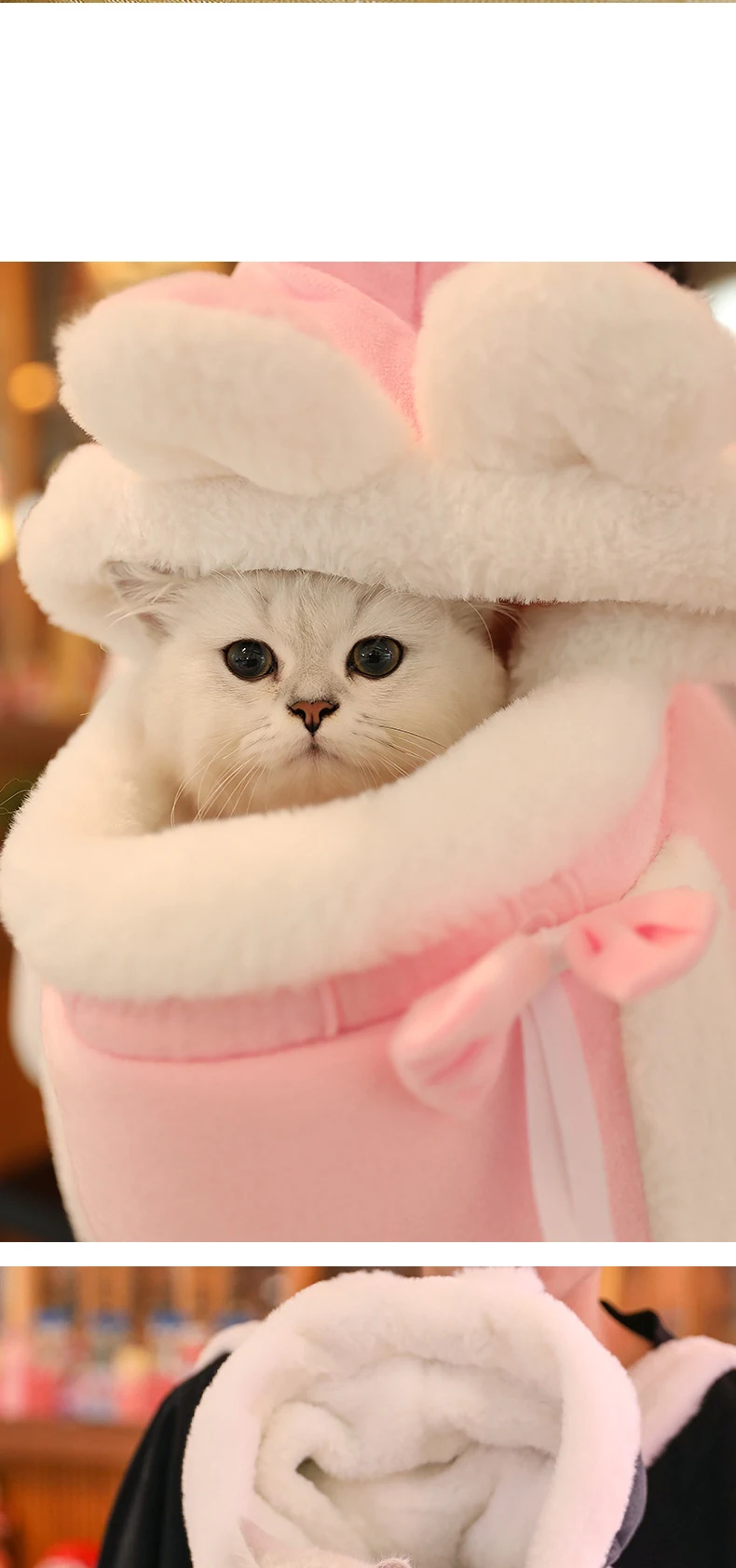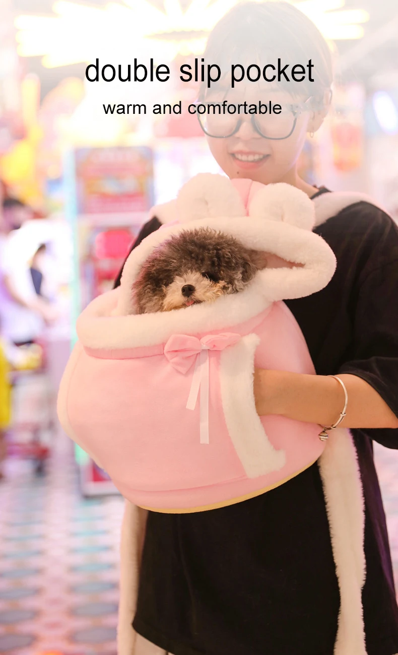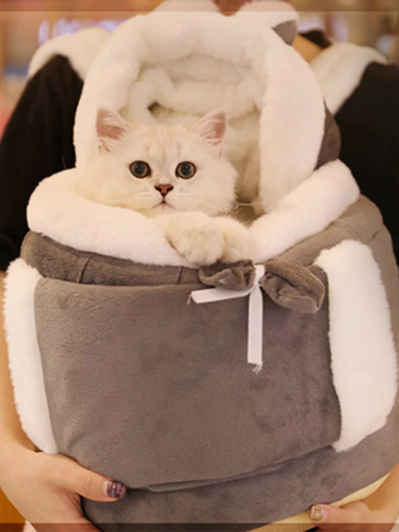 MADDEN-Bolsa de transporte cálida para mascotas de invierno, mochila de transporte para gatos de felpa, bonita bolsa portátil para perros pequeños, paquete de pecho, cesta de viaje para gatos y transporte para cachorros