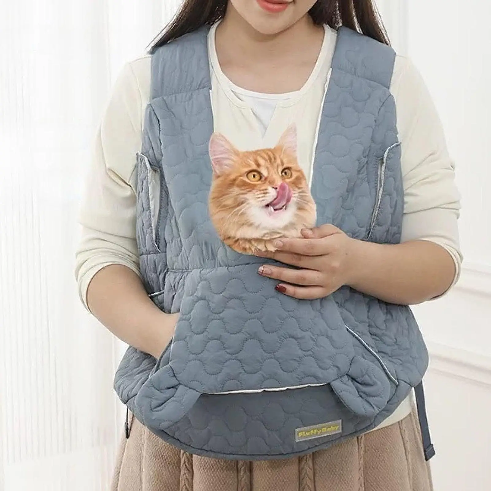 MATERIAL: Hecho de material de poliéster de calidad, este bolso de pecho para mascotas proporciona un ambiente cálido y confortable, muy adecuado para su uso en climas fríos.