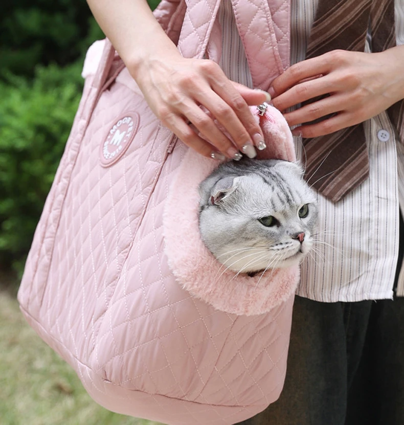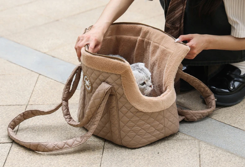 Bolsa de transporte cálida para gatos, bolsa de transporte gruesa de felpa para gatos, bolso de hombro individual para perros pequeños y gatos, suministros para mascotas, invierno
