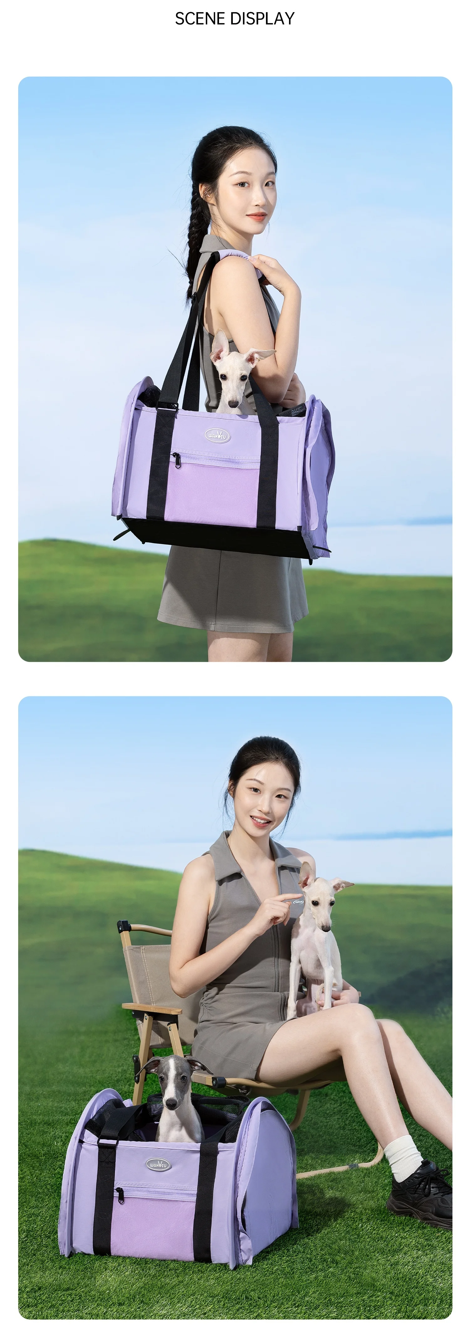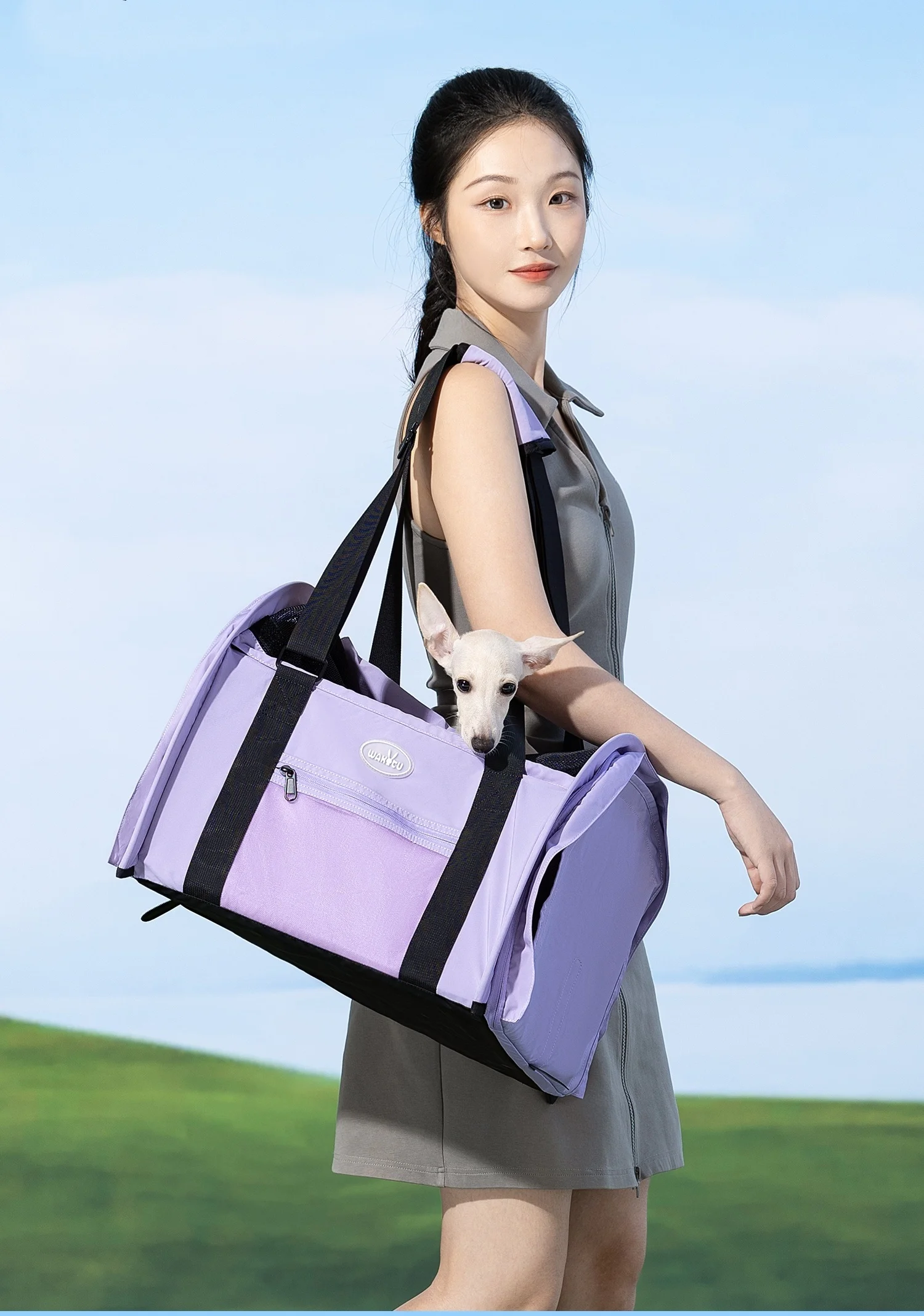Bolsa de transporte de cara suave para mascotas, bolsa plegable de gran capacidad para exteriores, bolsa para gatos, transpirable, aprobada por aerolínea, bolsa para mascotas, transportador de perros morado