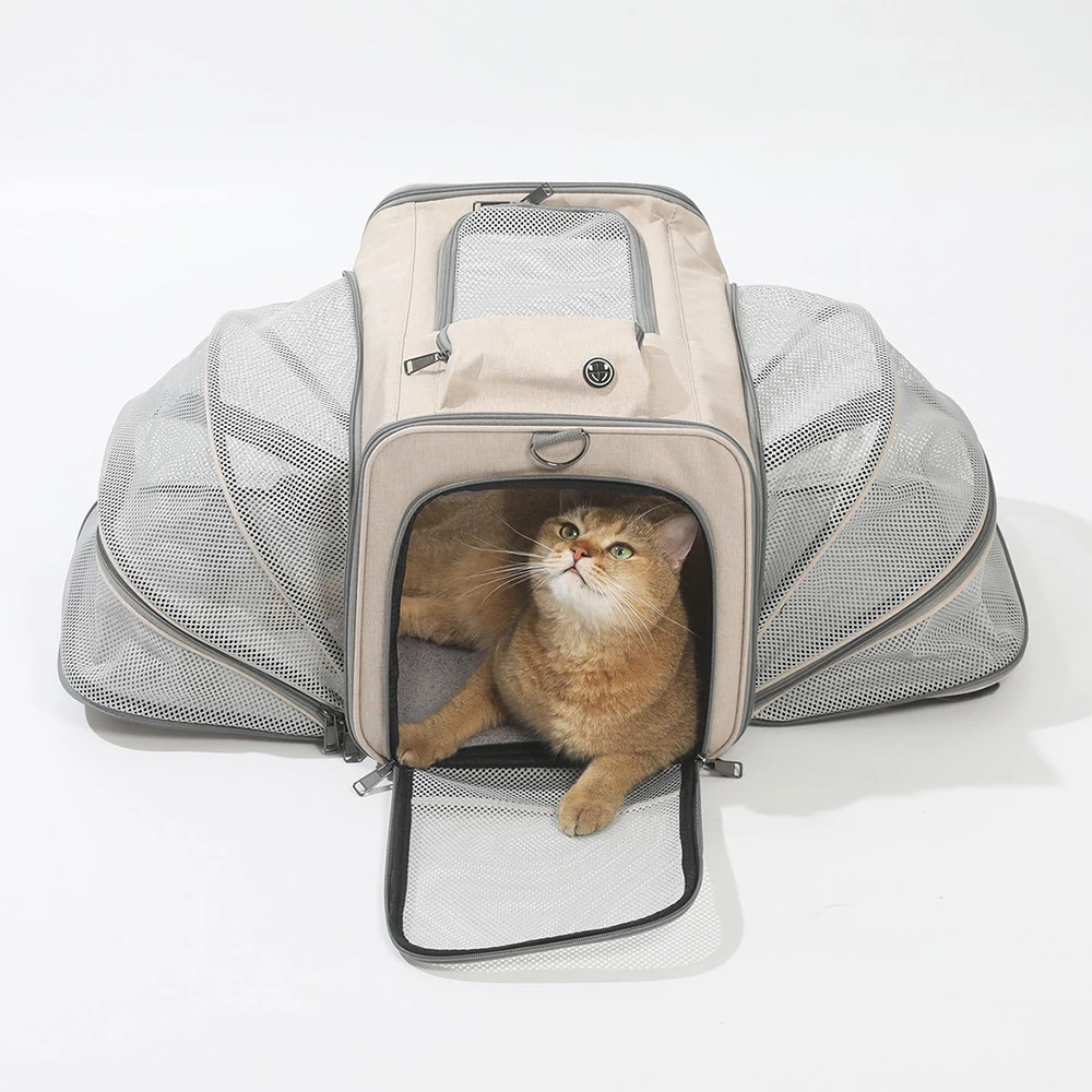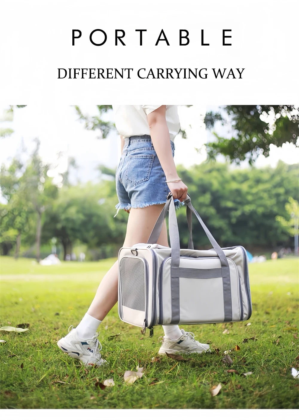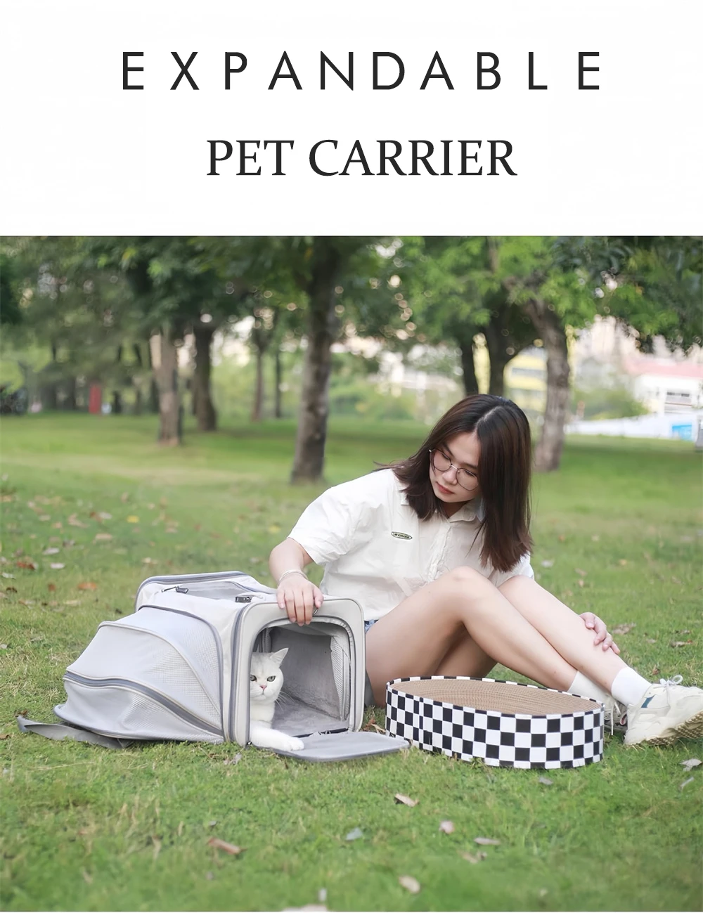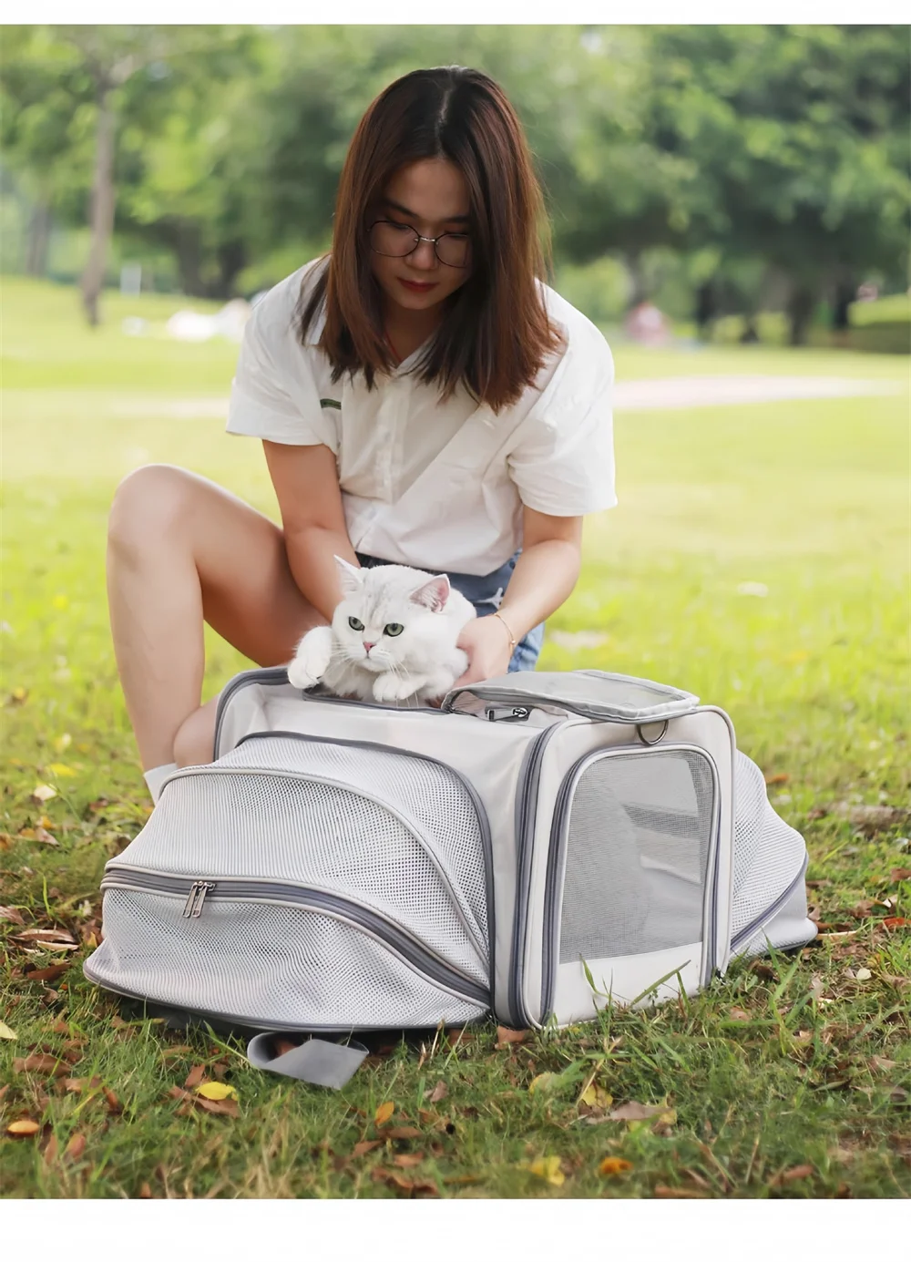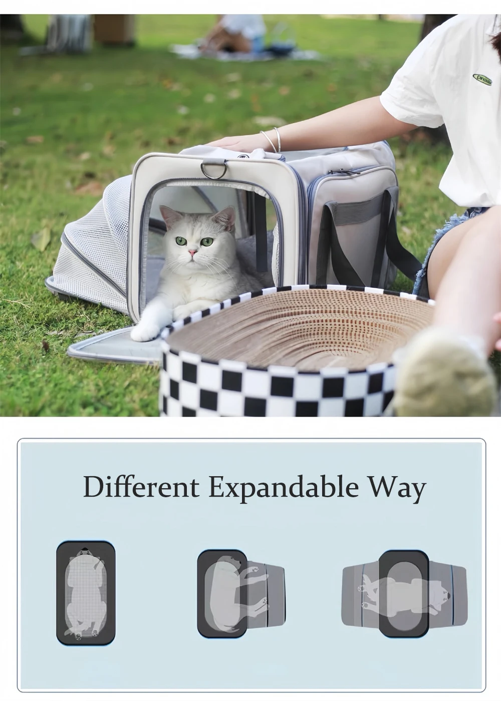 Bolsa de transporte expandible para perros pequeños, transportador de mascotas de viaje para asiento en coche aprobado por aerolínea para 2 gatos, bolsa portátil transpirable para mascotas