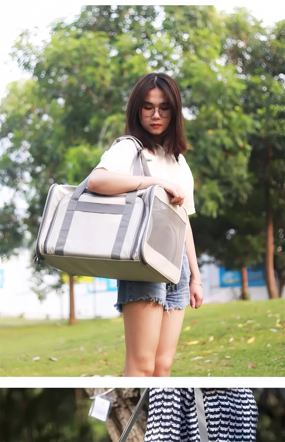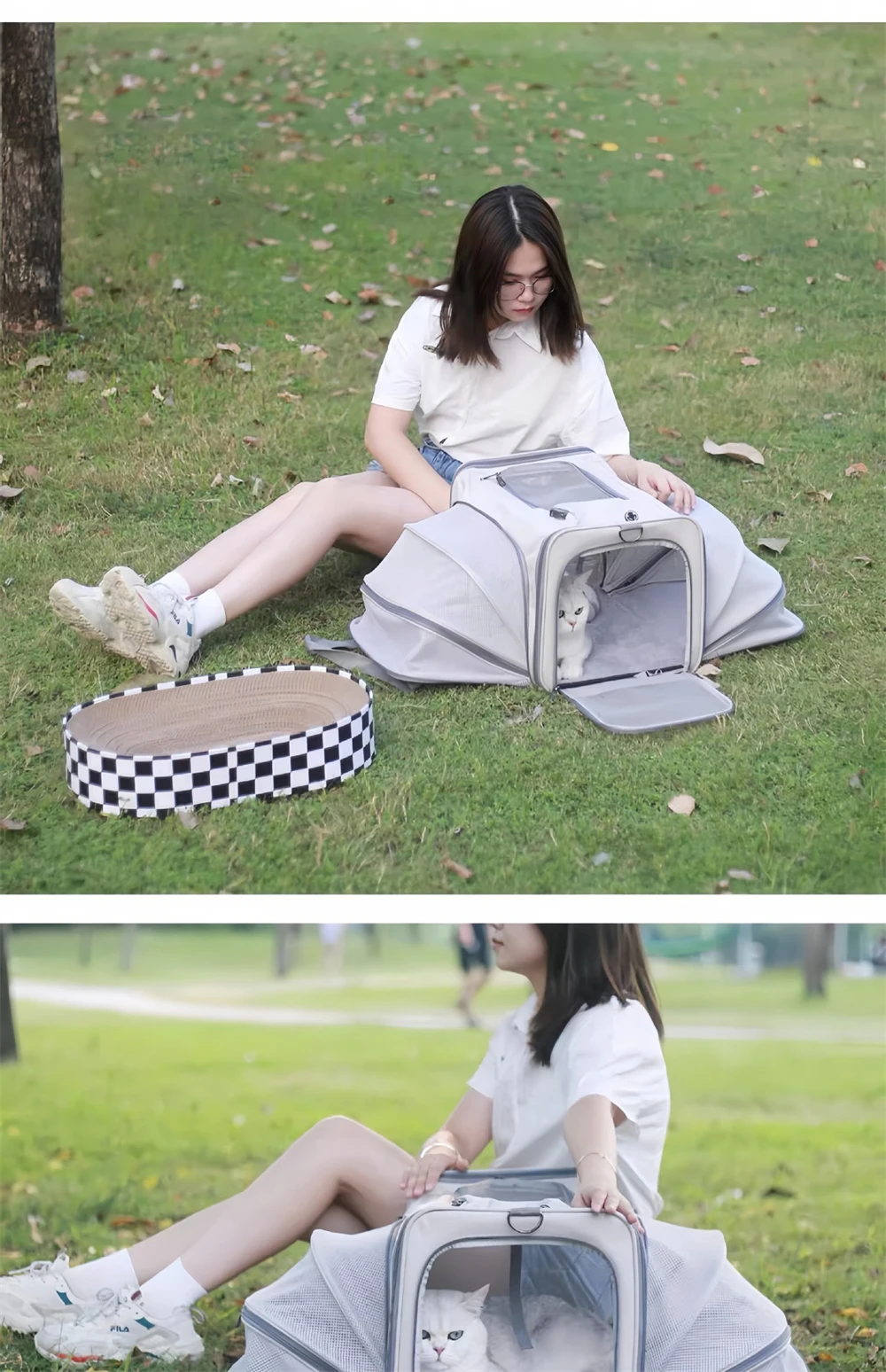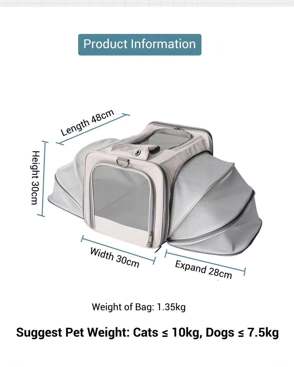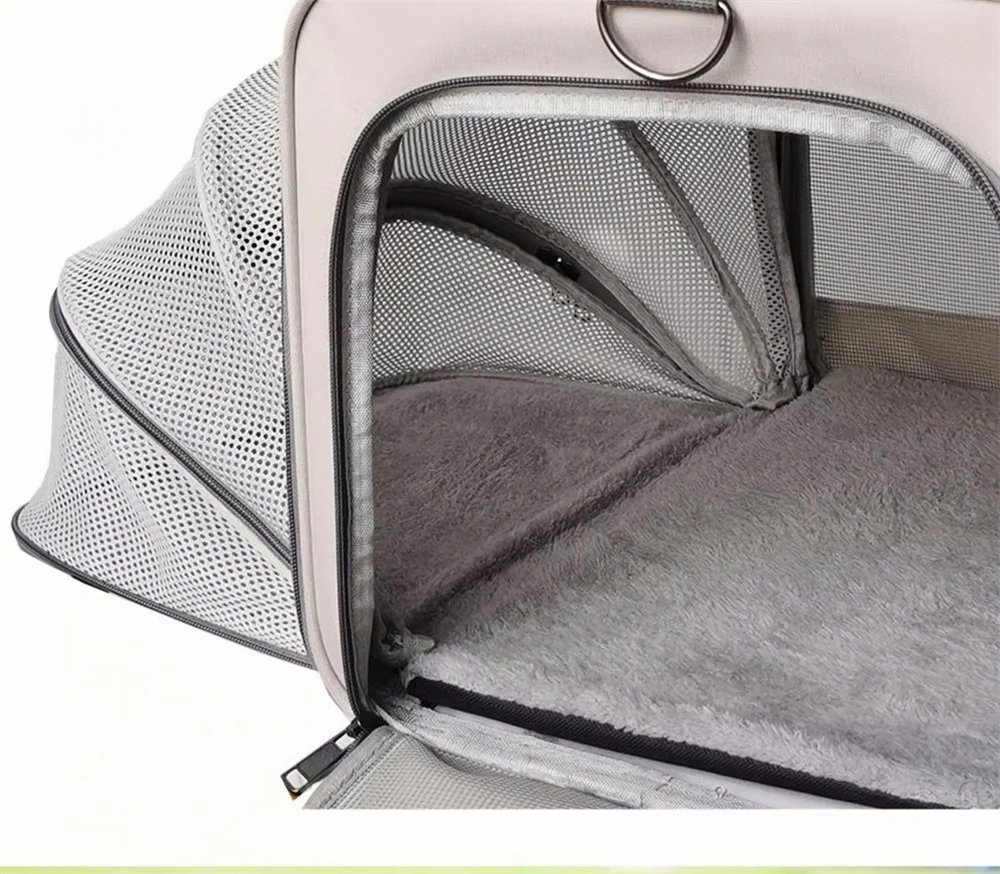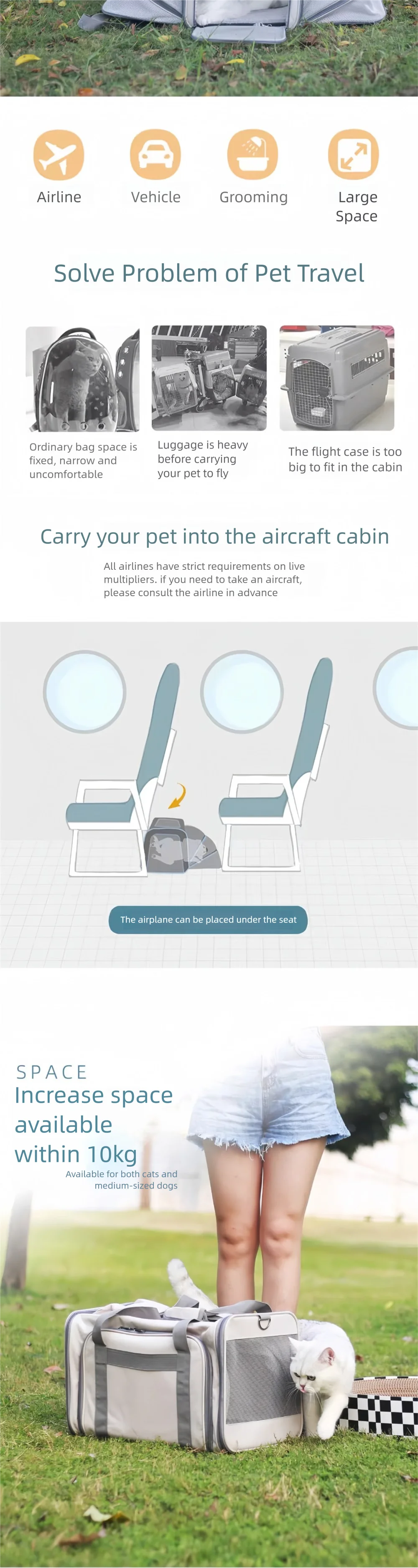 Bolsa de transporte expandible para perros pequeños, transportador de mascotas de viaje para asiento en coche aprobado por aerolínea para 2 gatos, bolsa portátil transpirable para mascotas