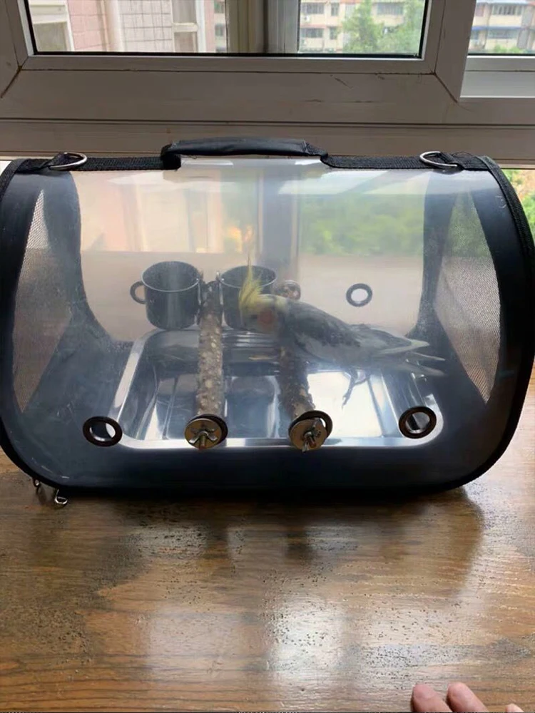 Bird Cage Plastic Transparent Outdoor Travel Cage Breathable Bird Carry Bag With Stand Pole Parrot Outing Backpack Bird Supplies