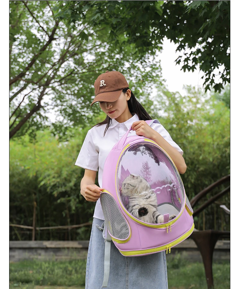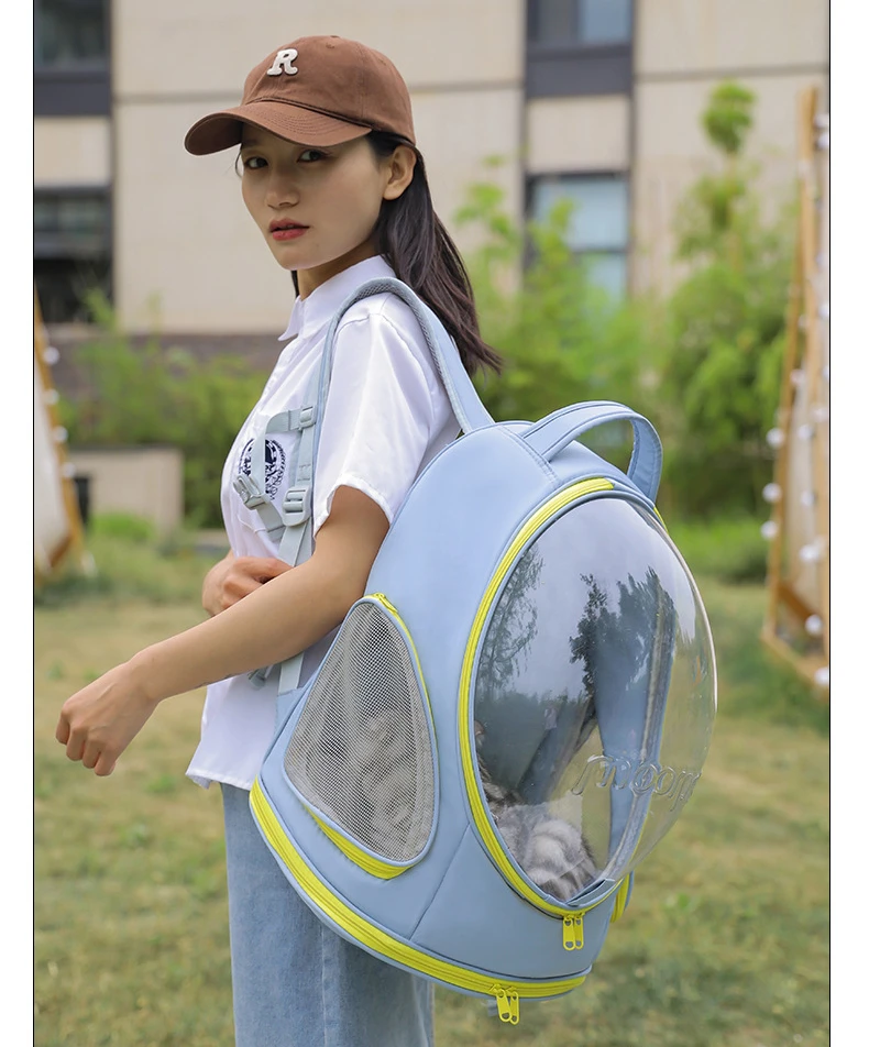 Bolsa de transporte para mascotas, mochila transparente y portátil, transpirable, cápsula espacial para cachorros y gatos