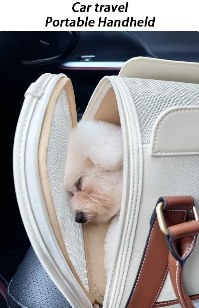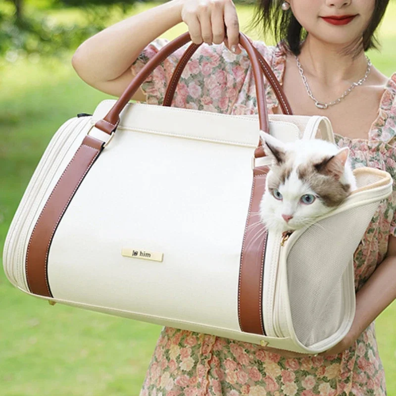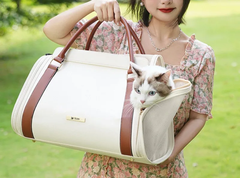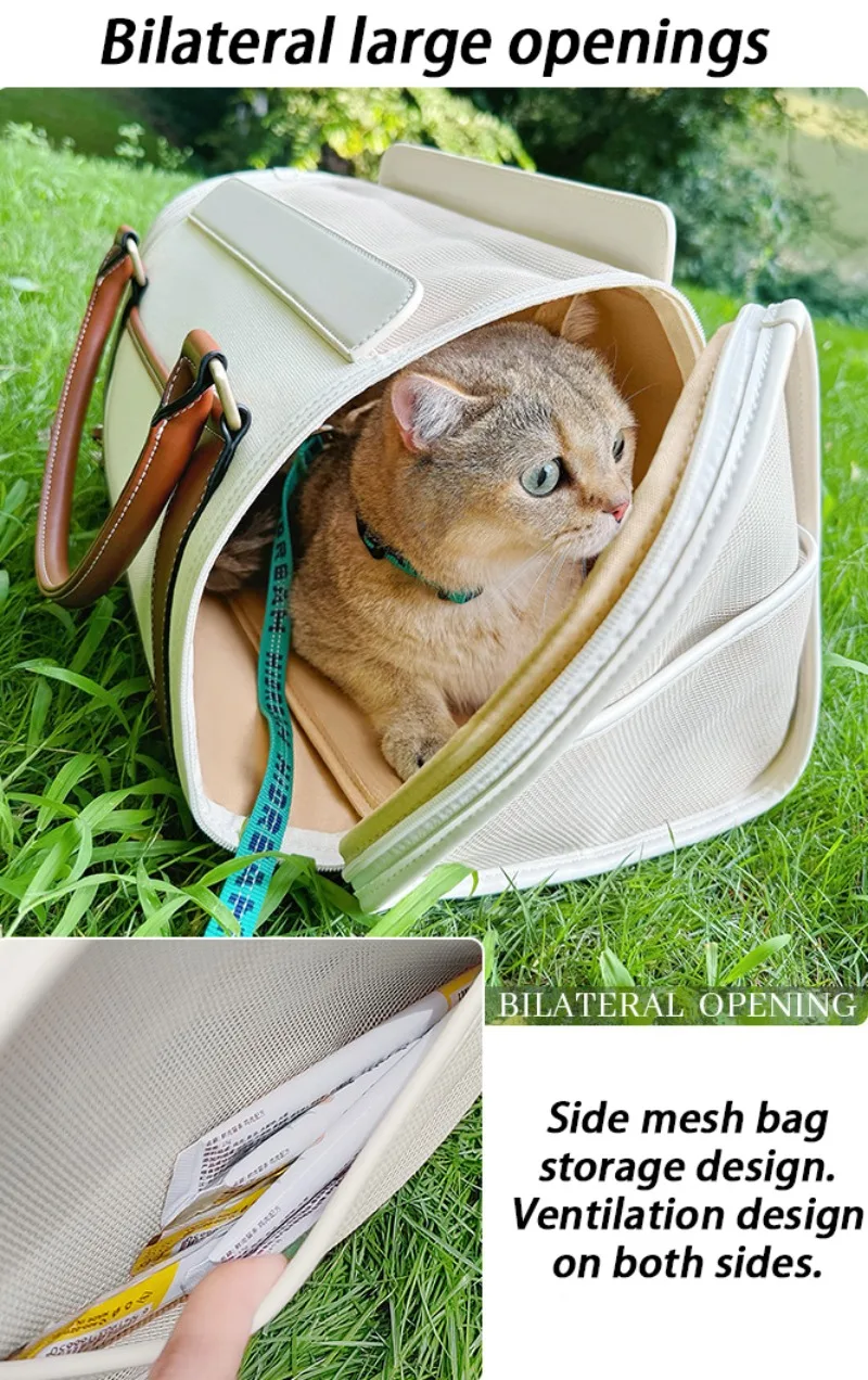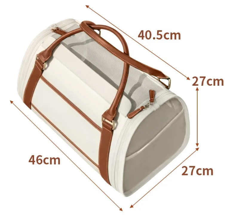 Material de la tela: lona/cuero Tamaño: 46x27X27cm Aplicación sugerida: gatos de menos de 9 kg; perros de menos de 6,5 kg Grandes aberturas en ambos lados. Almohadilla de punta de aleación, cuatro almohadillas de punta de aleación en la parte inferior,Anti-suciedad y resistente al desgaste. Cremallera de hardware. Herrajes y cuero exquisitos. Diseño de ventilación; diseño racional con ventilación en ambos lados y ocultación. Diseño de almacenamiento de bolsa de malla lateral Puede recoger cualquier mensajero.
