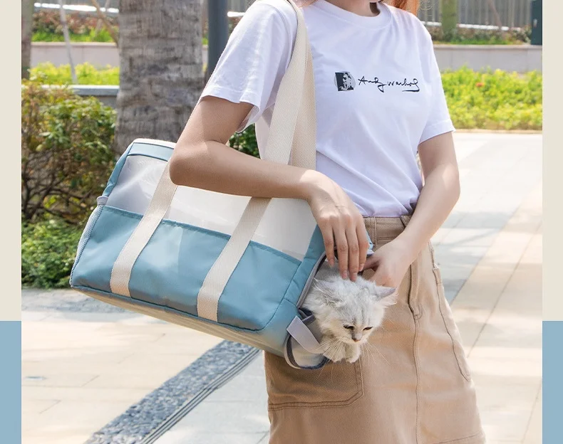 Bolsa de transporte portátil para gatos, bolso de viaje de verano transpirable de malla para gatos, perros pequeños, bolso de transporte, suministros para mascotas