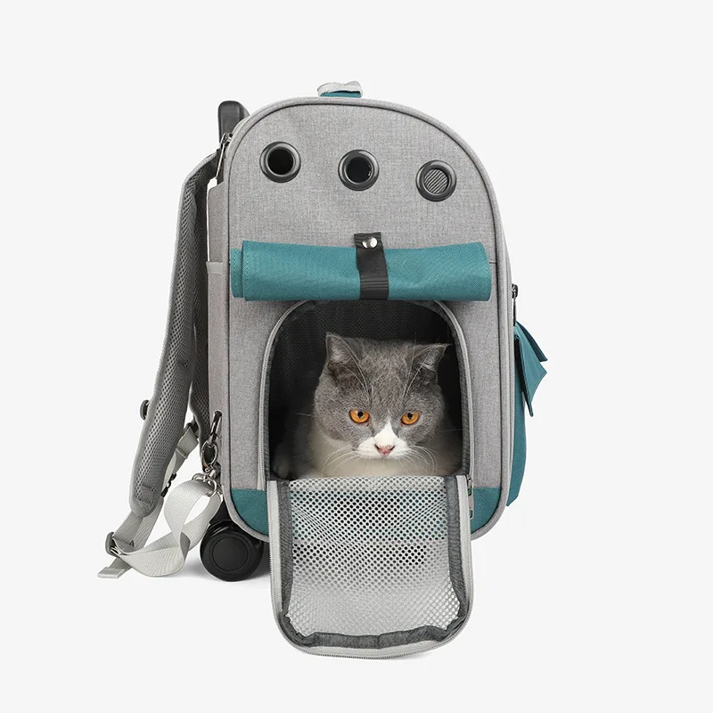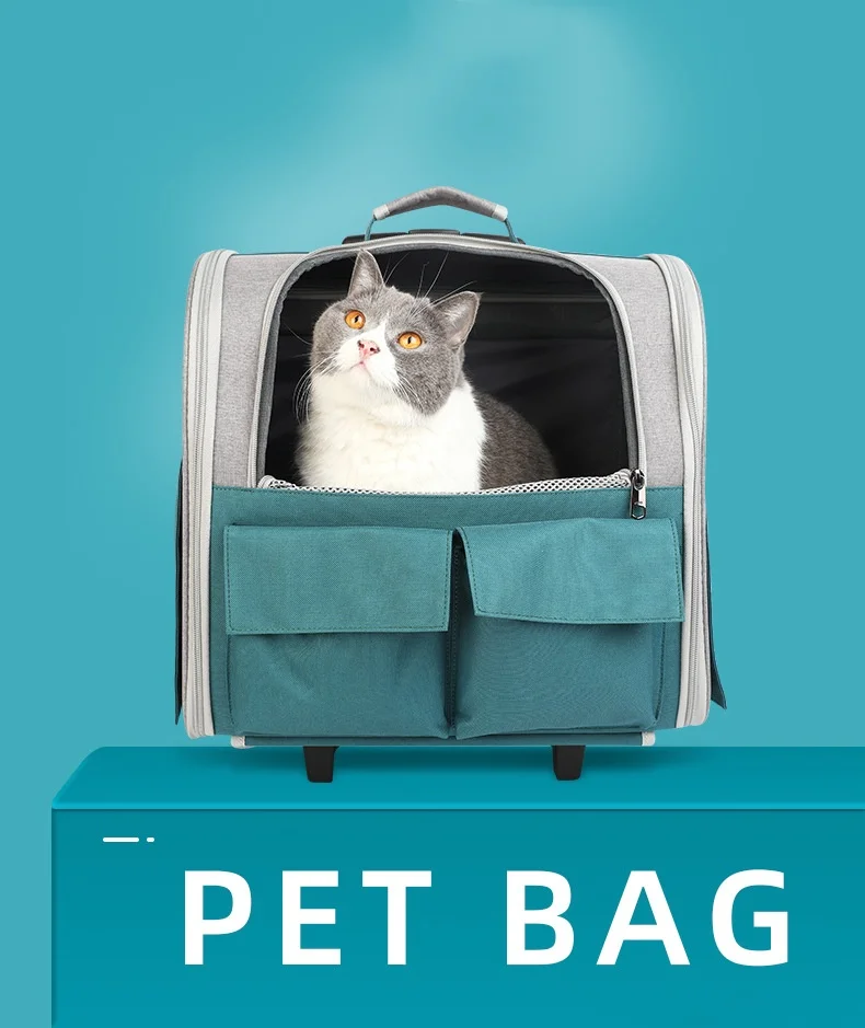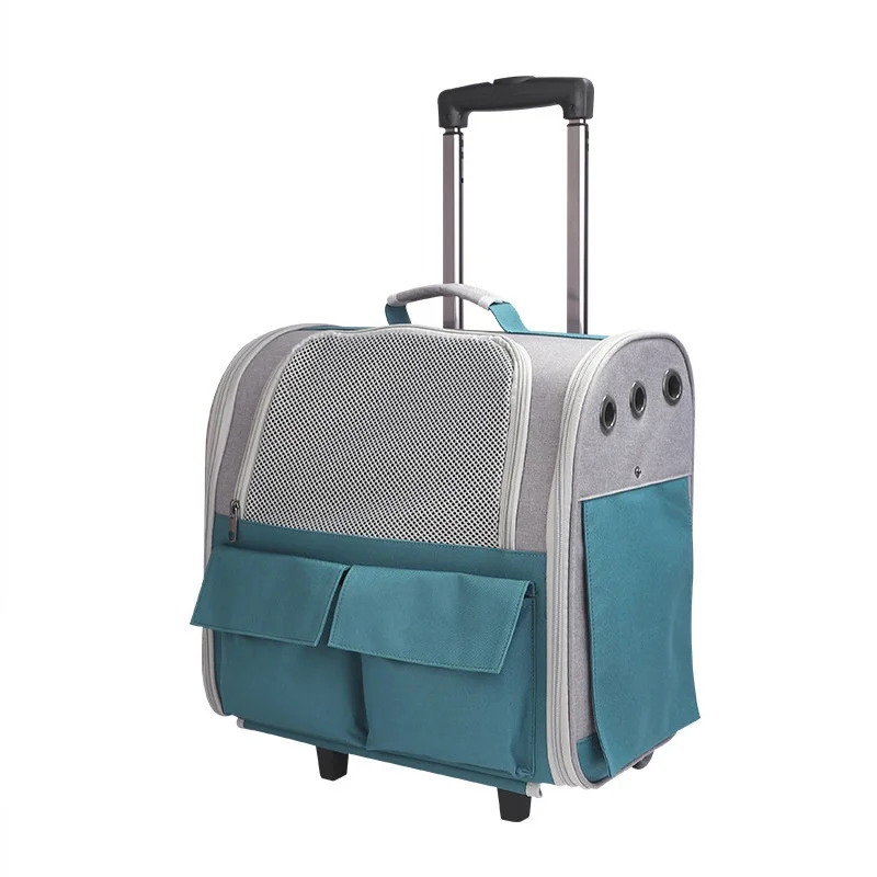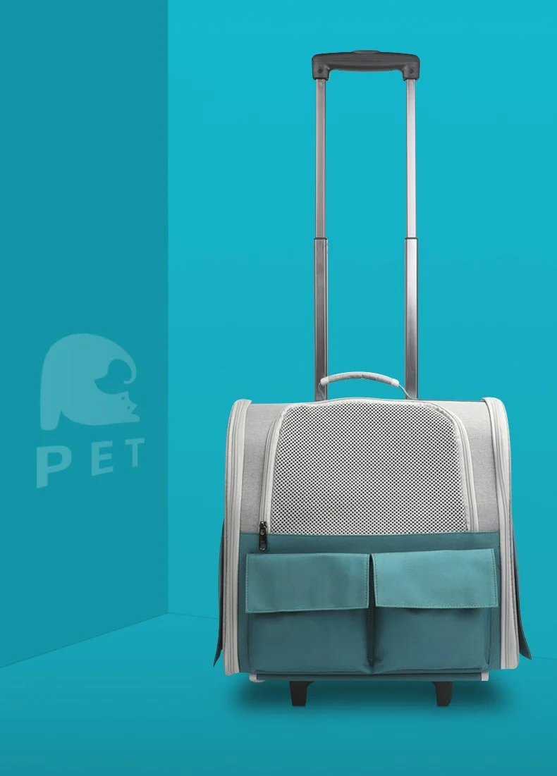 Bolsa de transporte rodante para mascotas, diseño de malla transpirable, bolsa de viaje para perros con ruedas, portador para gatos, aprobado por la aerolínea