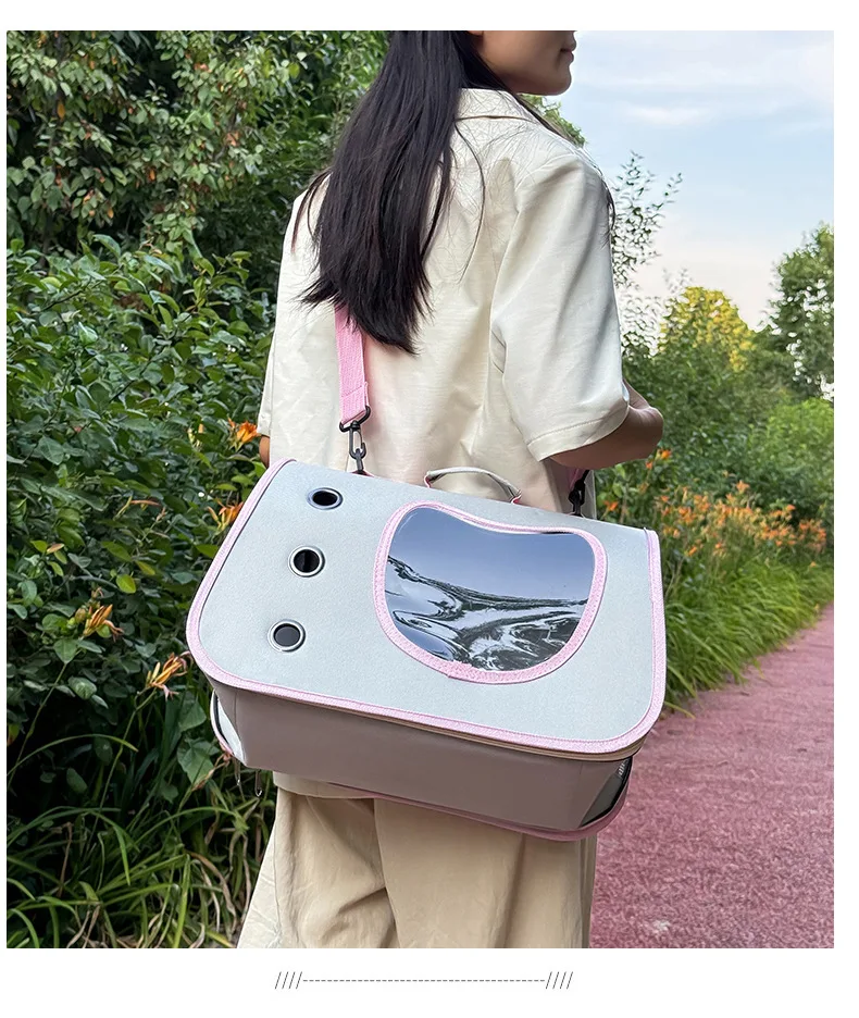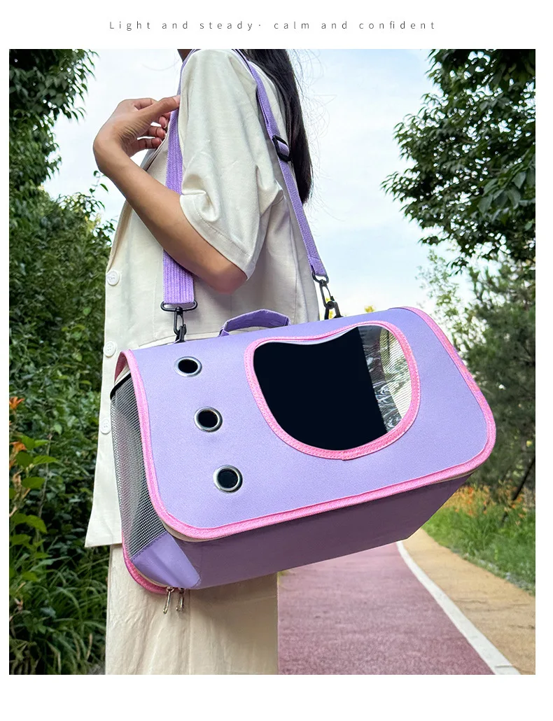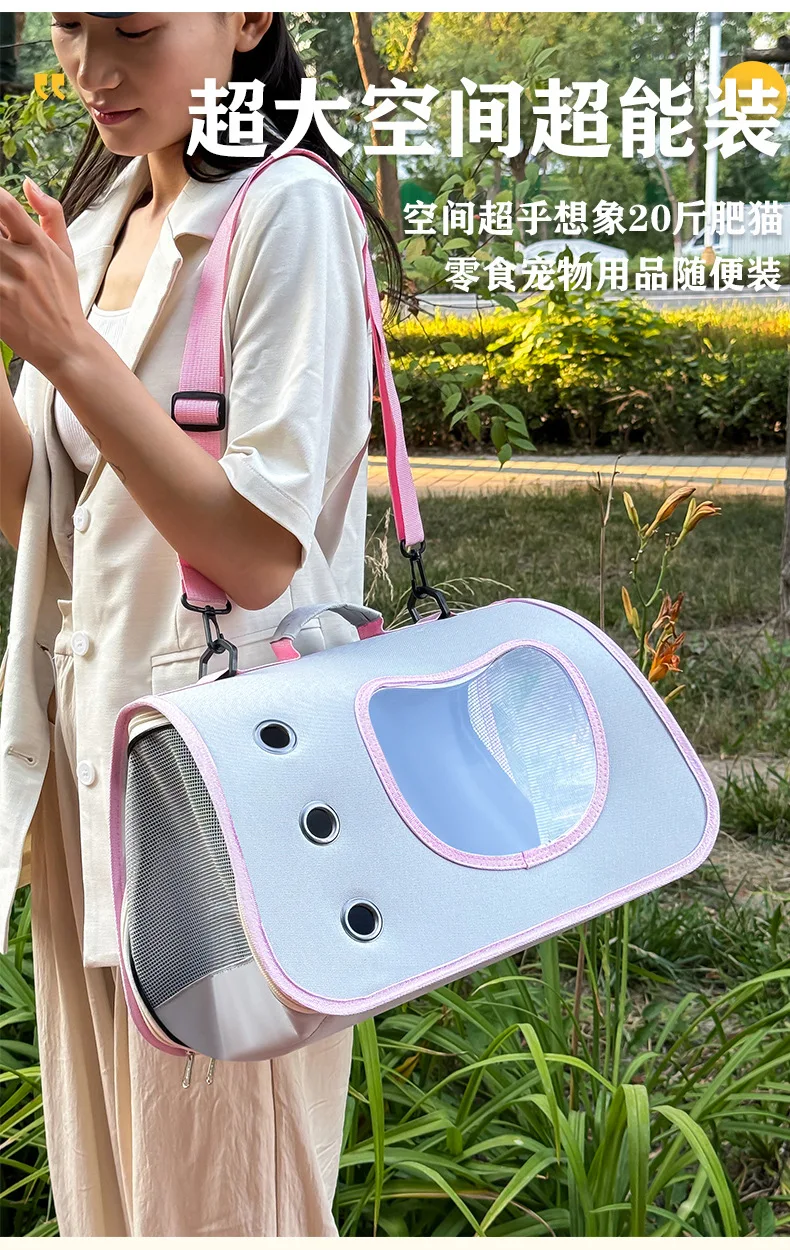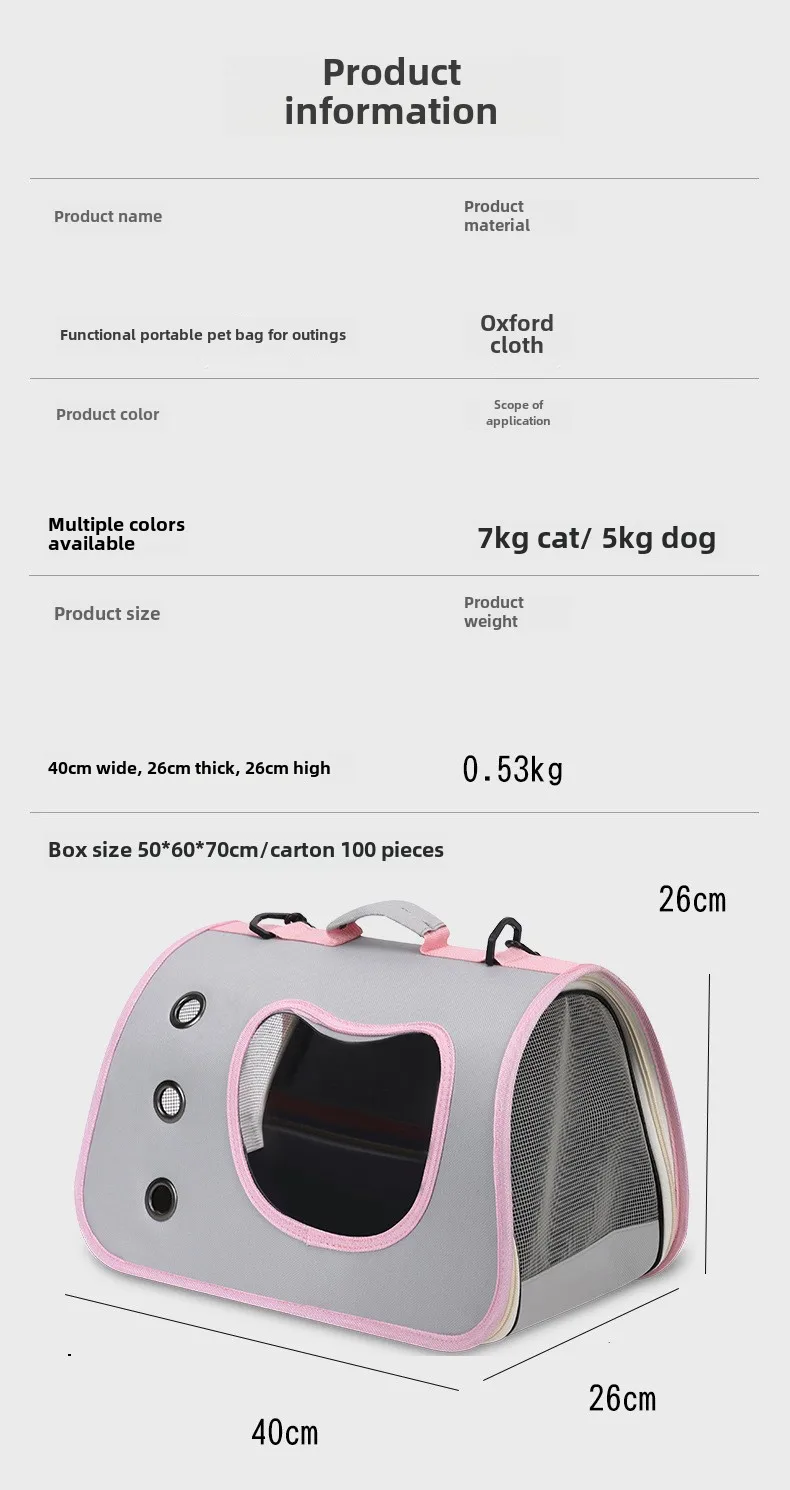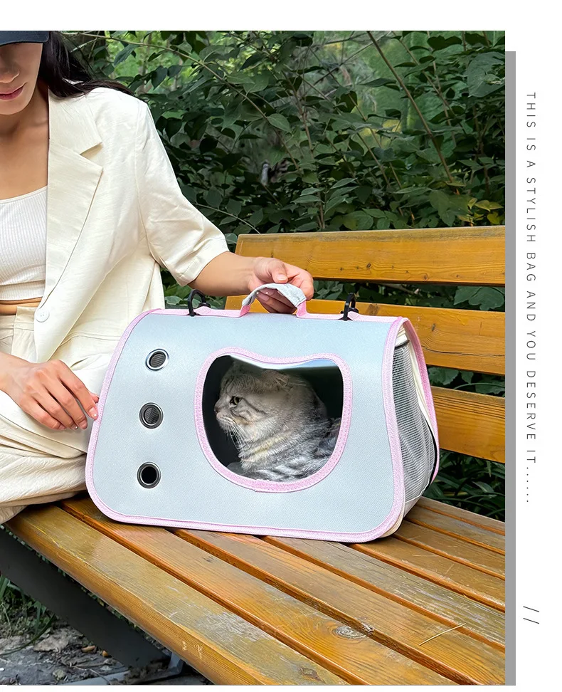 Bolsa de viaje para mascotas y gatos, práctica bolso de hombro saliente, suministros universales plegables para mascotas, transportador para gatos
