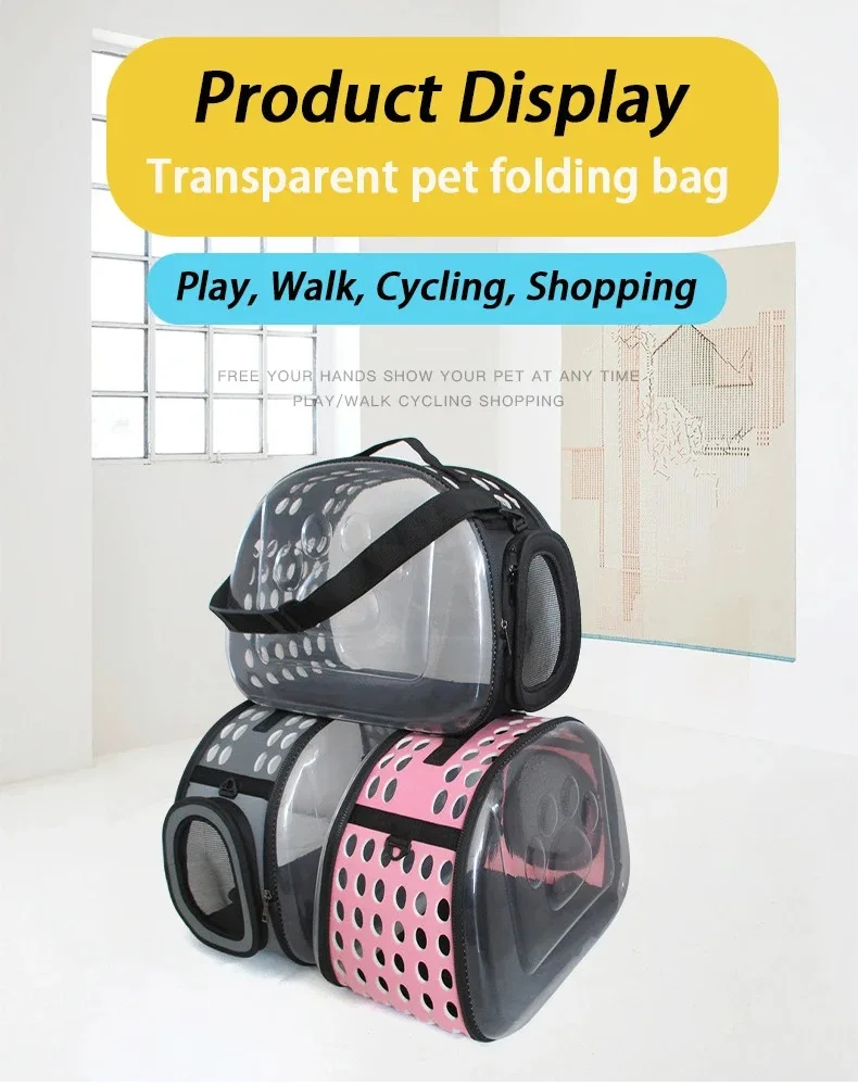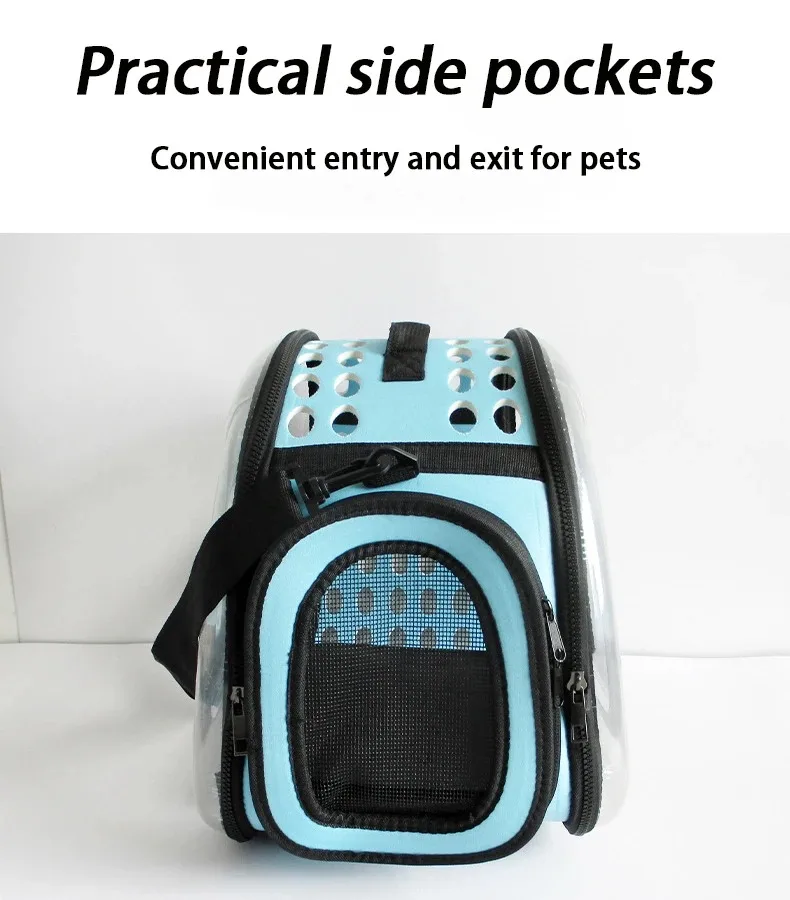 Producto: Bolso cruzado plegable transparente para mascotas.