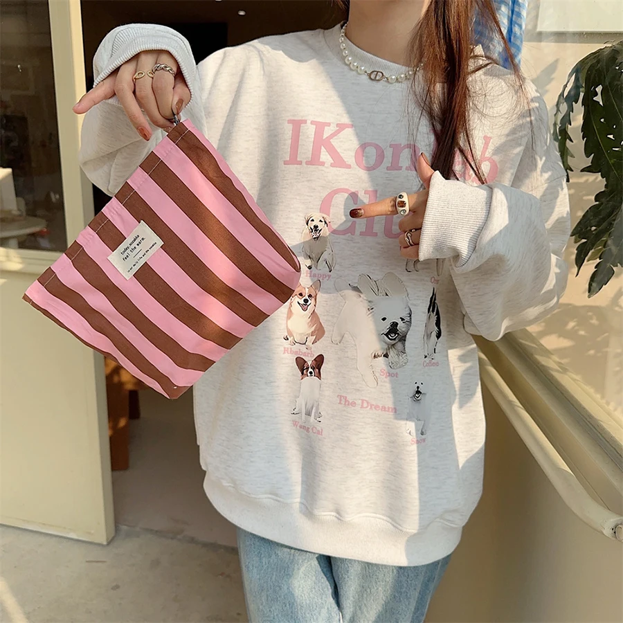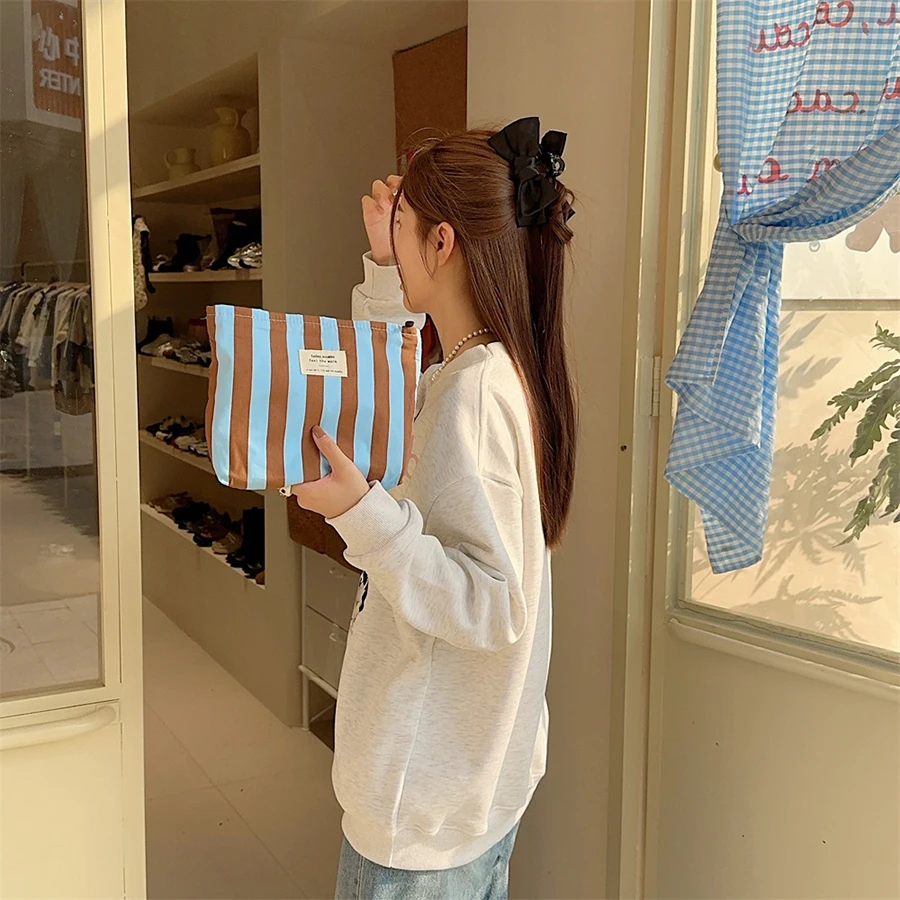 Bolsas de almacenamiento a rayas para mujer, bolsa de cosméticos femenina de gran capacidad, estuche de maquillaje, bolso de mano de lona, Color contrastante