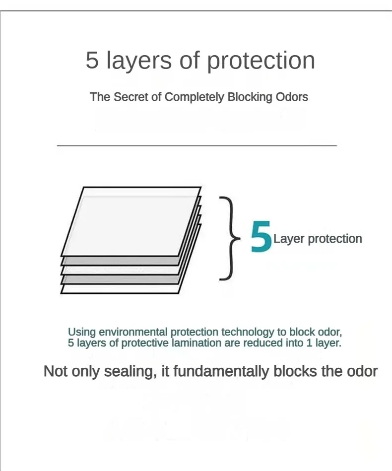 ● Utilizando tecnología de protección ambiental que bloquea el olor, 5 capas de capa protectora se comprimen en 1 capa, no solo sellando sino también bloqueando el olor.