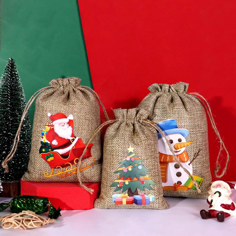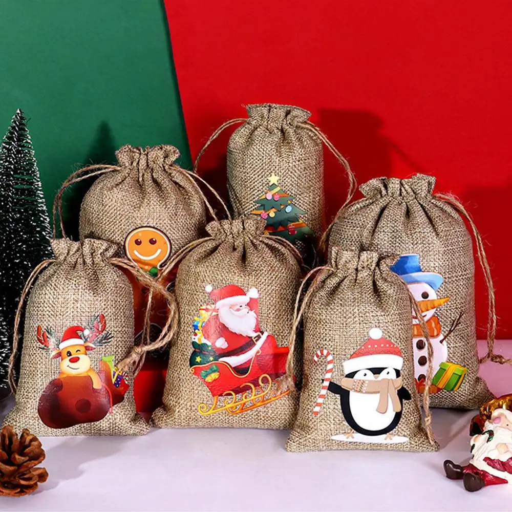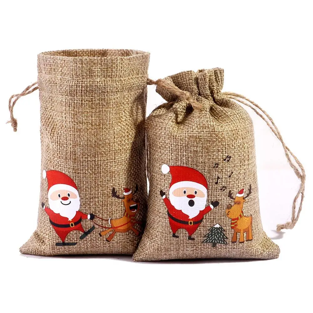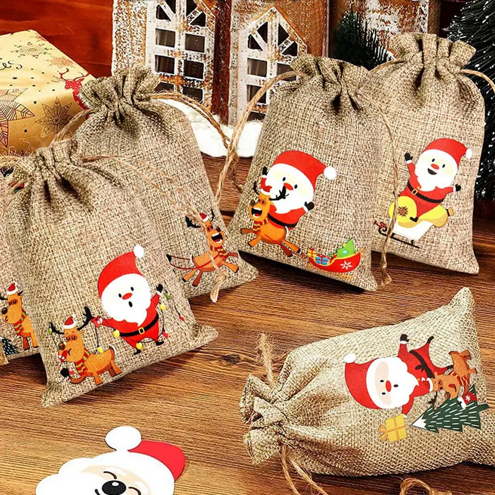 2 、 [Diseño único de tema navideño] Las bolsas de regalo con cordón están diseñadas en varios estilos, que son elementos navideños clásicos, lindos y hermosos, los patrones incluyen Papá Noel, alce, árbol de Navidad y más.