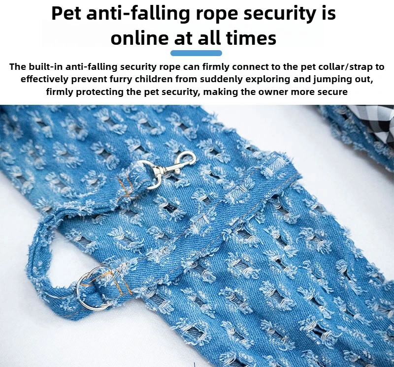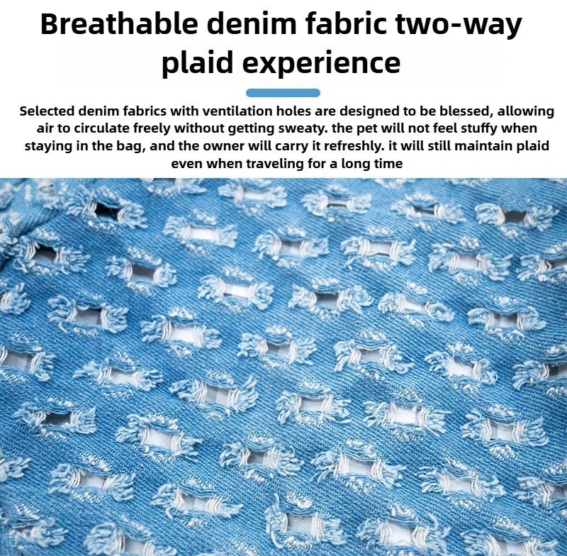 Adecuado para mascotas de hasta 7,5 kg. gran capacidad Ligero y transpirable tela vaquera Bolsa lateral para teléfono Cuerda anticaída para mascotas Atención: 1. Debido a las diferentes herramientas de medición, la medición manual tendrá un error de 1-2 cm. ¡El tamaño específico recibe el tema real! 2. Disparo físico, debido a la diferente luz de disparo, la pantalla puede tener alguna diferencia de color, ¡consulte el tema real!