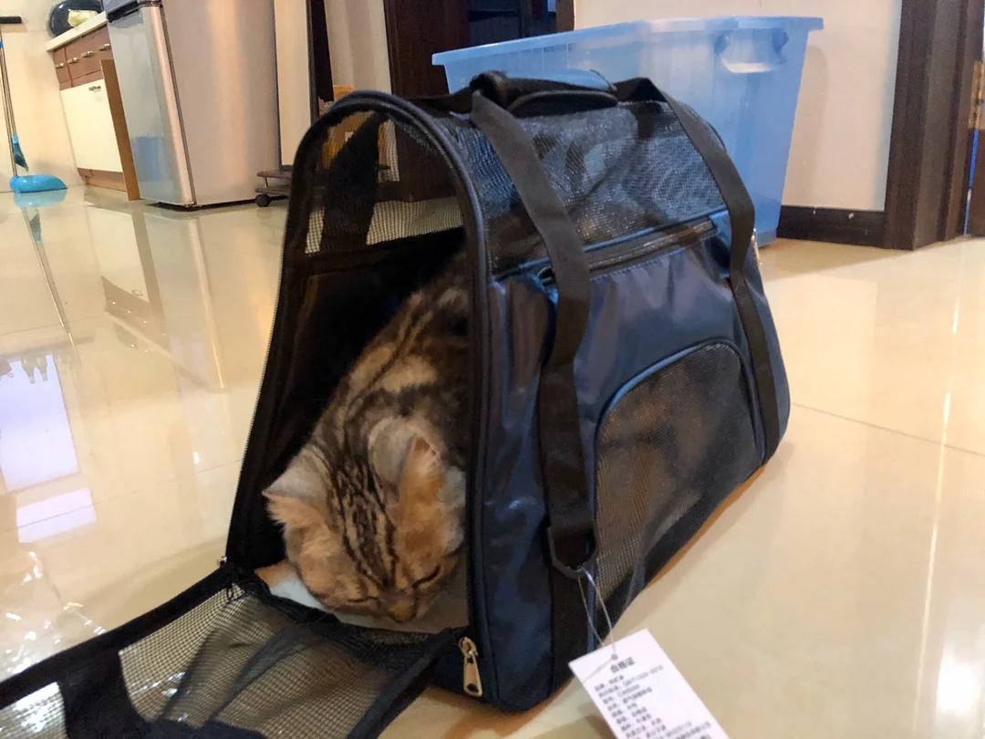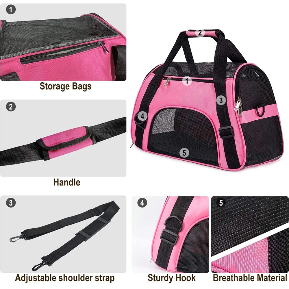 3.Esta bolsa de viaje para mascotas está hecha de material de primera calidad, liviano, no tóxico y resistente a los rayones.