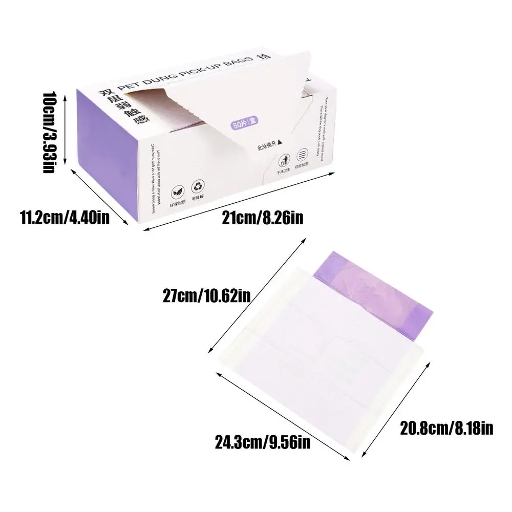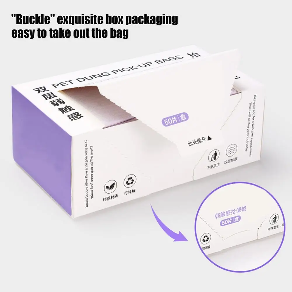 1. Necesidades diarias cubiertas: un paquete de 50 garantiza la comodidad y reduce la necesidad de recompradores frecuentes, atendiendo eficazmente a las necesidades diarias y al mismo tiempo es una solución rentable para hogares con múltiples mascotas que requieren bolsas resistentes para excrementos de perros con regularidad.