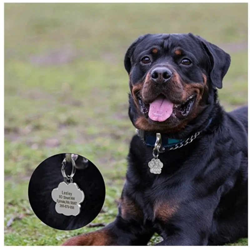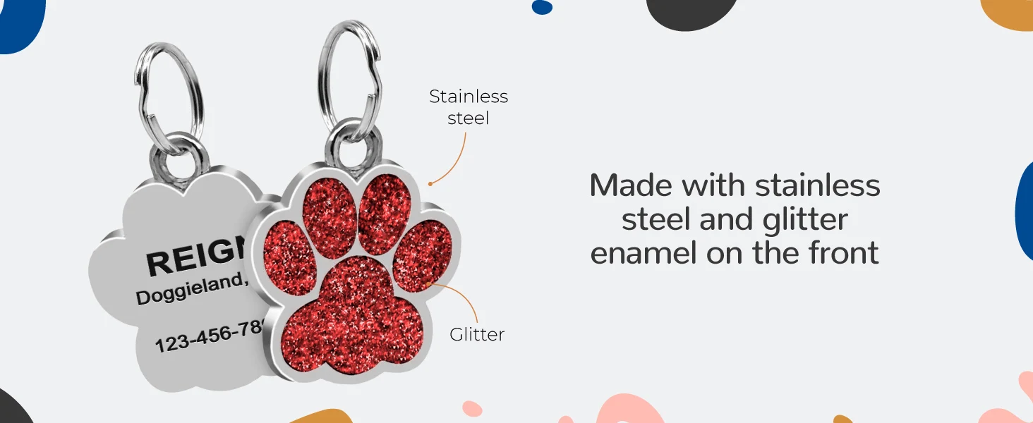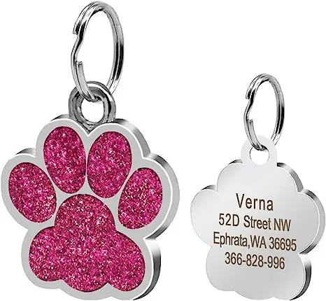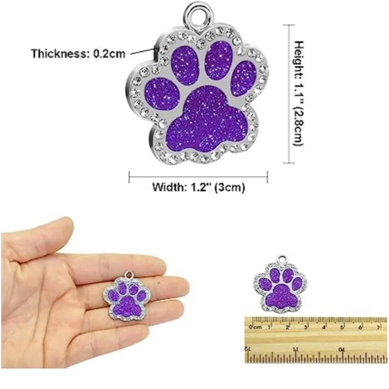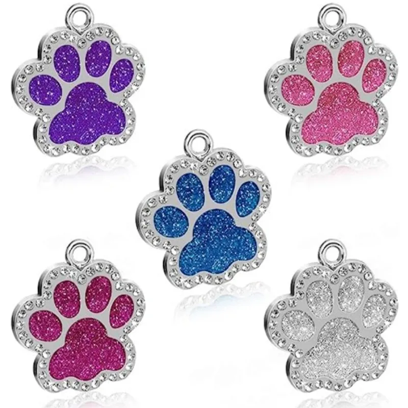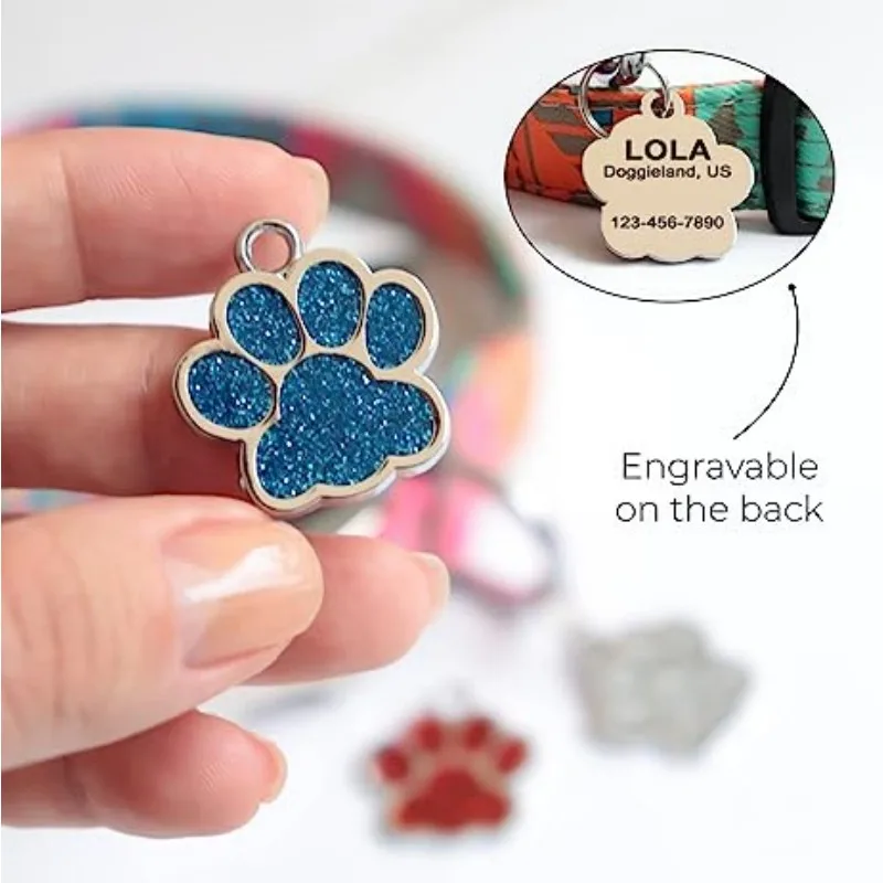 Etiquetas personalizadas personalizadas para perros y gatos, etiqueta grabada con nombre de identificación para cachorros y mascotas, colgante con purpurina de pata de acero inoxidable, accesorios para perros