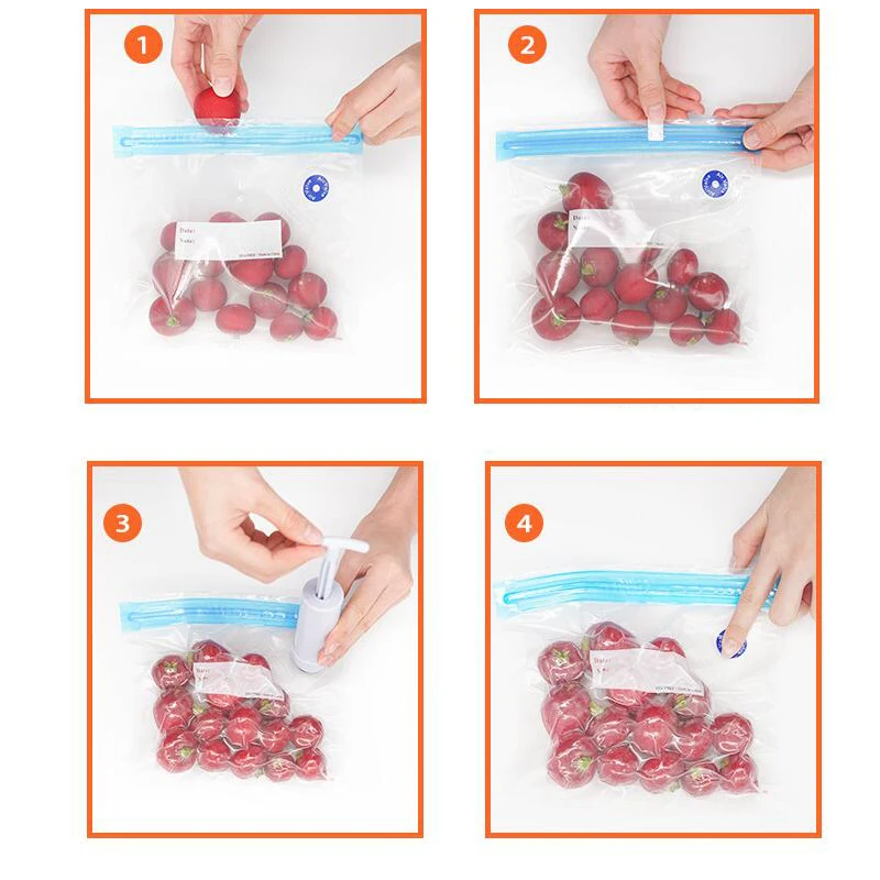10pcs Reusable Food Storage Bags Vacuum Bag Food Air Vacuum Compressed Bag Reusable Ziplock Freezer Bags Kitchen Storage