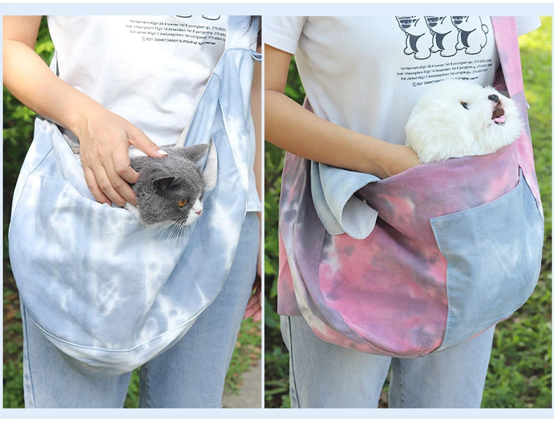 Bolsas de transporte de lados suaves para mascotas, bolso de hombro para viajes al aire libre, mochila portátil para perros pequeños, suministros para mascotas, Tie Dye