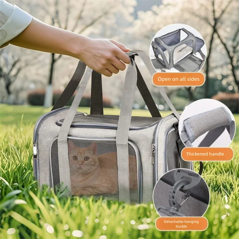 Bolso bandolera portátil de tela Oxford para transportar gatos, correa ajustable para el hombro, bolsa de viaje para mascotas, transpirable para gatos pequeños y gatitos