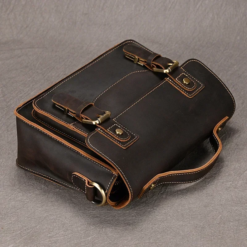 Bolso cruzado de cuero genuino para hombre, estilo Retro a la moda, bolsos de mensajero para hombre, bolsos con asa