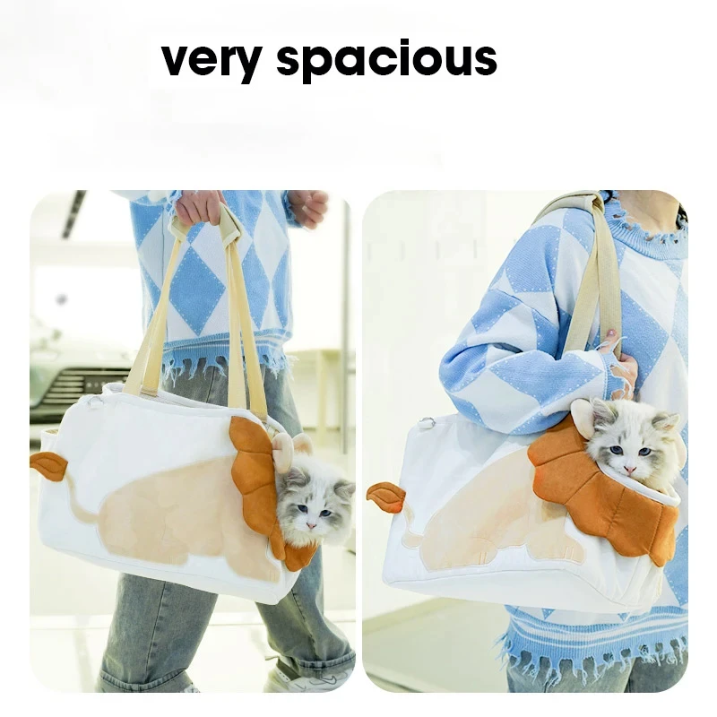 Bolso de viaje con cremalleras de seguridad para mascotas, bolsa de transporte suave con diseño de León, transpirable, para gatos y perros