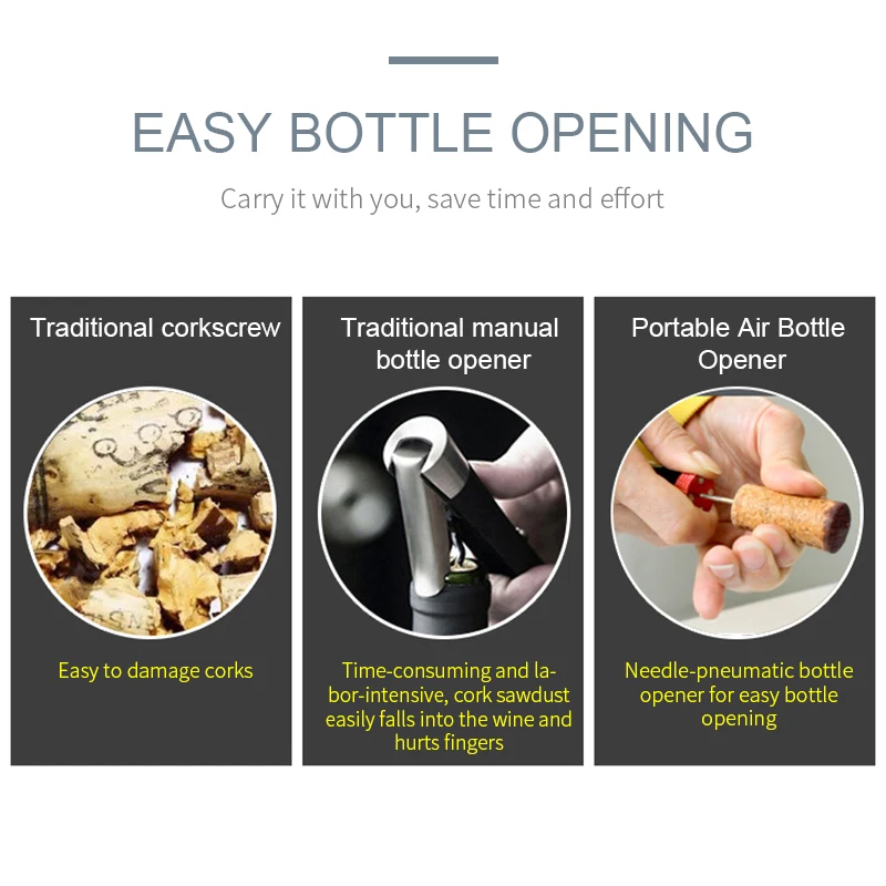 Herramienta de apertura de presión de aire, retire el corcho sin esfuerzo