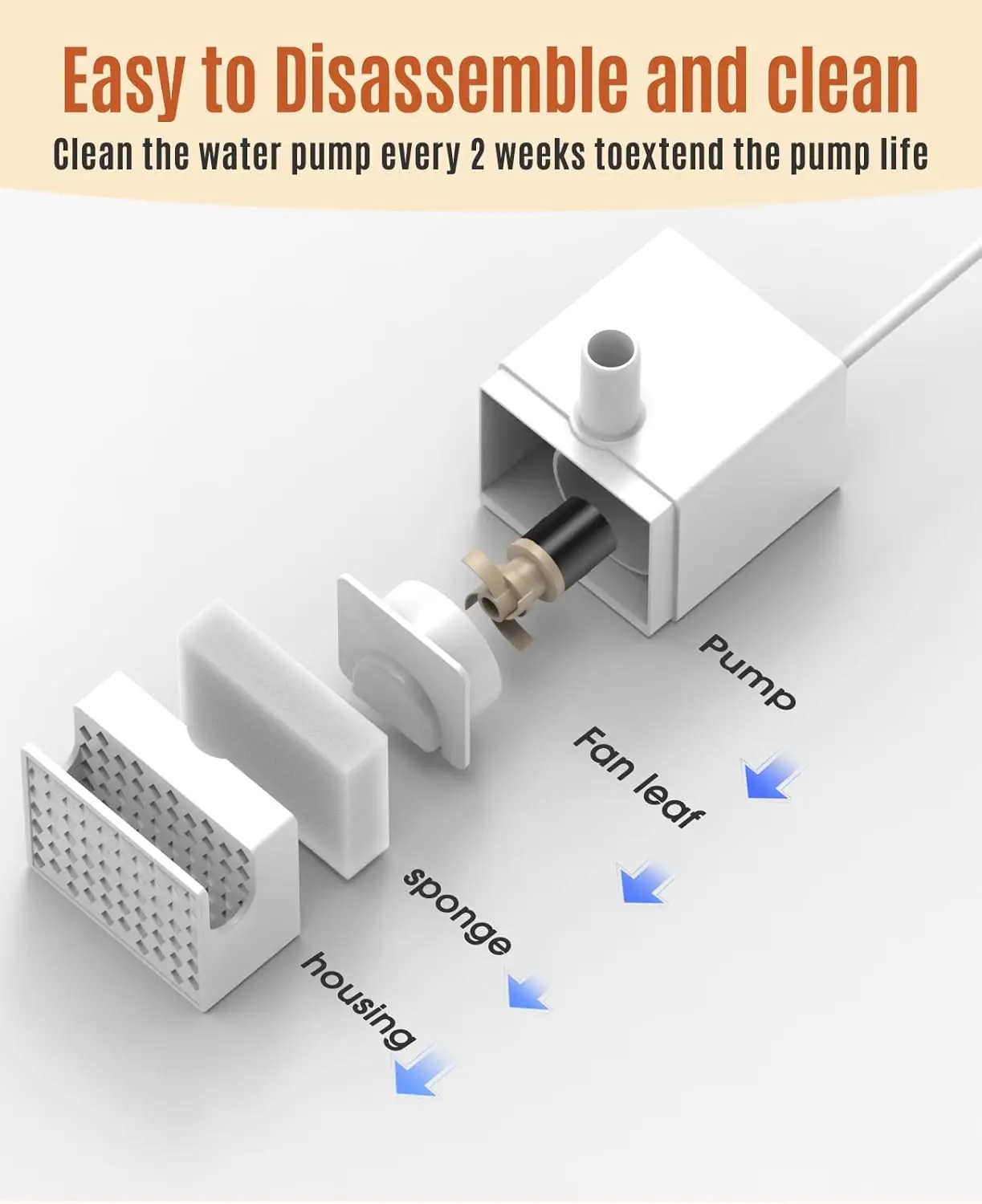 【Ultra silenciosa】La bomba de repuesto de la fuente para gatos es completamente silenciosa, el ruido es inferior a 30 decibelios.