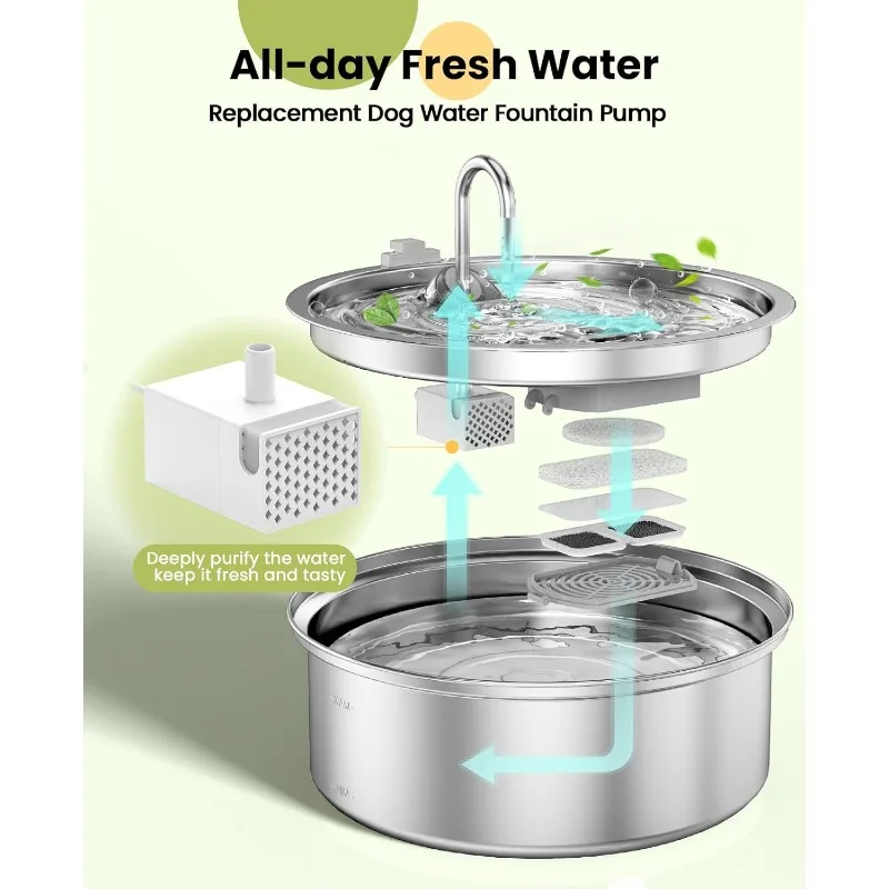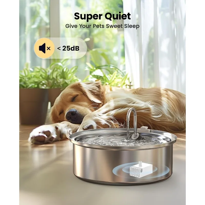 304 Stainless Steel Material Keep Water Clean and Fresh:The dog water fountain for large dogs is made of 304 stainless steel, which is firmer and dishwasher safe, easy to clean.Clean water keeps your dog's kidneys healthy.You should choice 304 Stainless Steel dog fountain