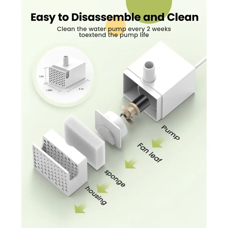 Red Light Reminder Filling Function:Dog fountain water bowl with the upgraded anti-drying water pump,which it with benefit of power outage protection. When the water level reaches the minimum water level line, (LED light changes from white to red when water is out), you can replace the fresh water for your pet in time without any hassle. In addition, Top lid holds a small amount of water to provide your pet with water in case of a power outage