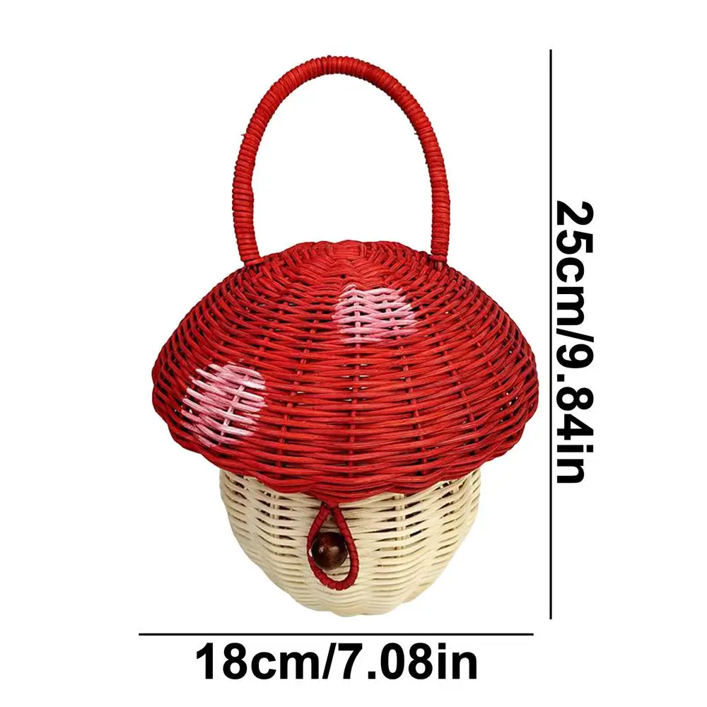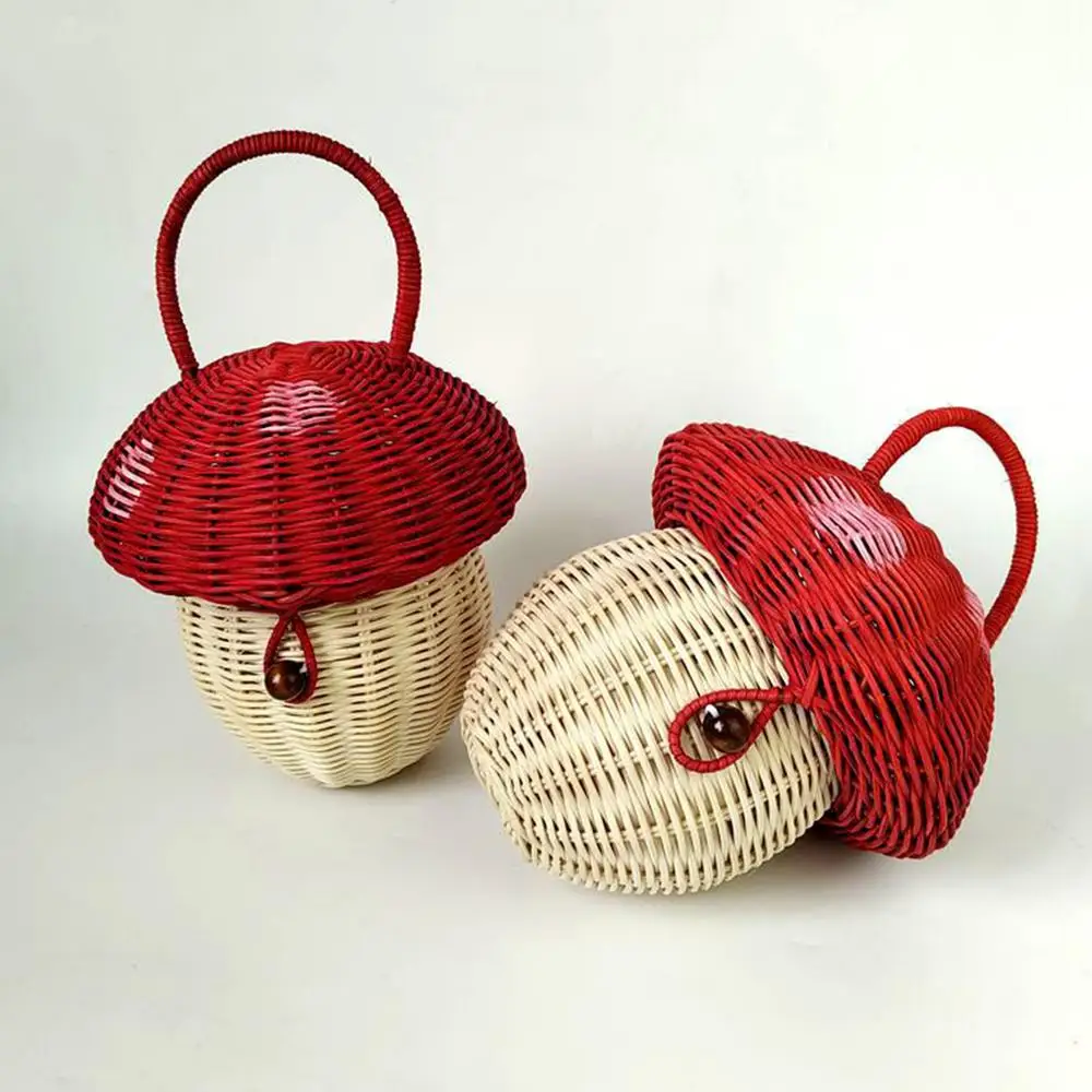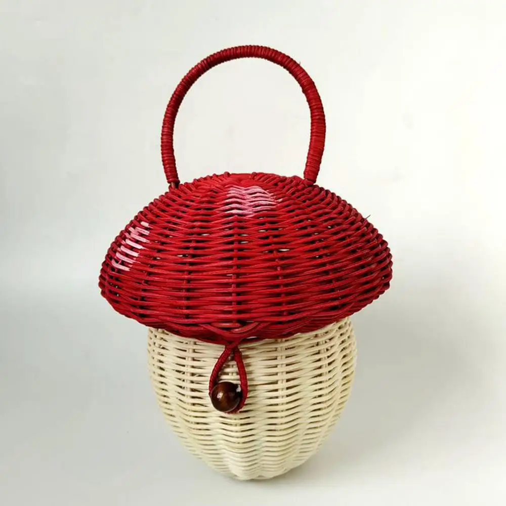 2. Estructura robusta: este mini bolso de mano con forma de hongo para mujer está hecho de un material resistente que no se deforma fácilmente.Presenta una producción de ratán que le confiere una estructura robusta y una textura delicada.