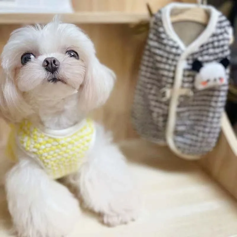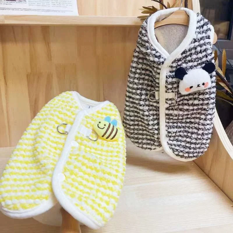 Linda chaqueta a cuadros para perro, abrigo cálido de algodón, ropa para perro, chaleco para cachorro de otoño, chaqueta con patrón de abeja, cárdigan de gato, abrigo, ropa para mascotas Chihuahua