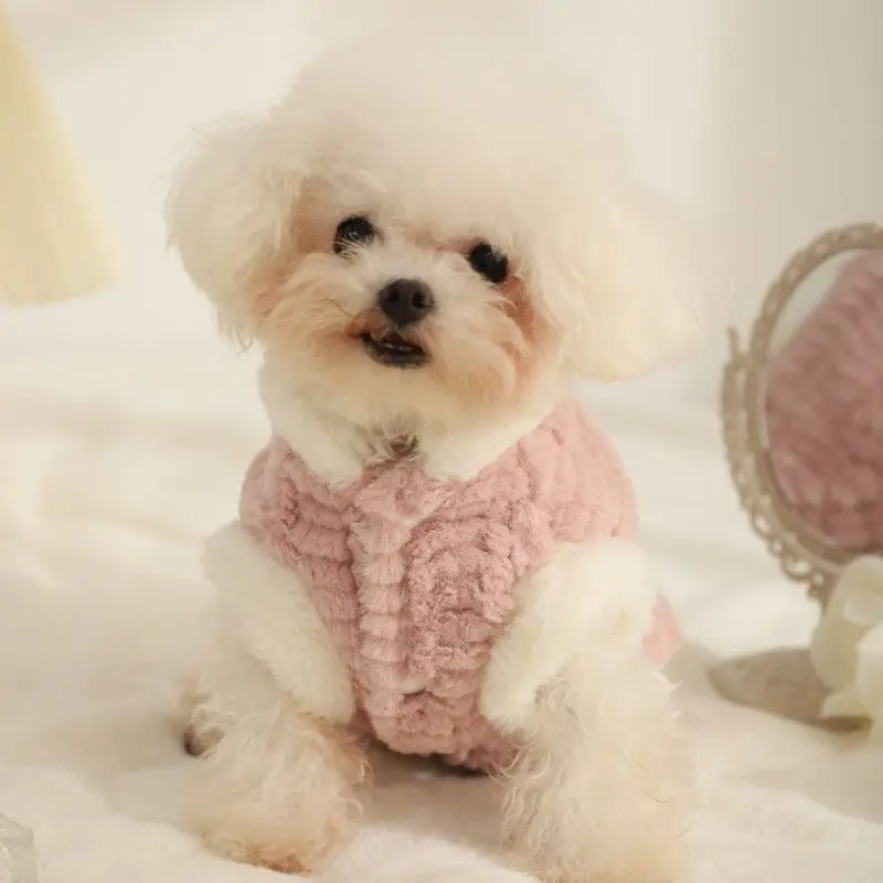 Bonito abrigo de pelo de conejo para perro, ropa de invierno para mascotas, chaleco de felpa cálido, chaleco de oso para perros pequeños, ropa para cachorros de peluche, chaquetas para perros