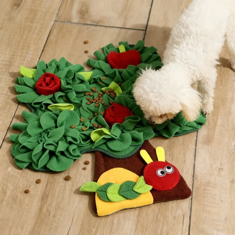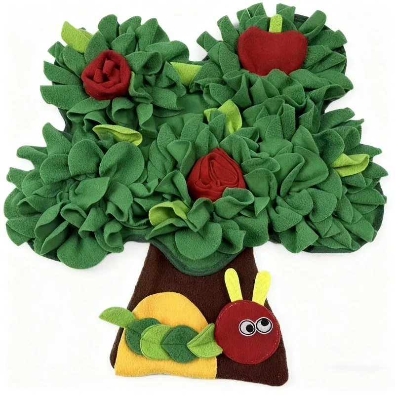 Diseñado como un árbol vibrante con bolsillos ocultos entre las exuberantes "hojas" verdes, anima a los perros a utilizar sus instintos naturales olfativos para encontrar golosinas.Los lindos detalles de manzana, flor y oruga añaden encanto y al mismo tiempo proporcionan más escondites.