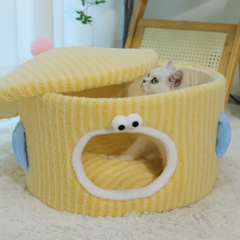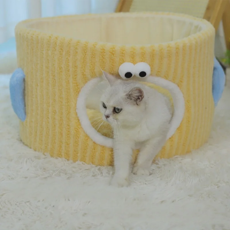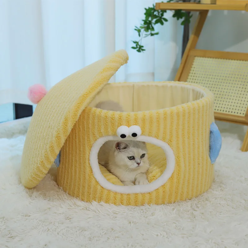 Lindo diseño de dibujos animados: cuenta con un adorable aspecto de dibujos animados con una suave textura amarilla y detalles encantadores, lo que lo convierte en una encantadora adición al área de su mascota.