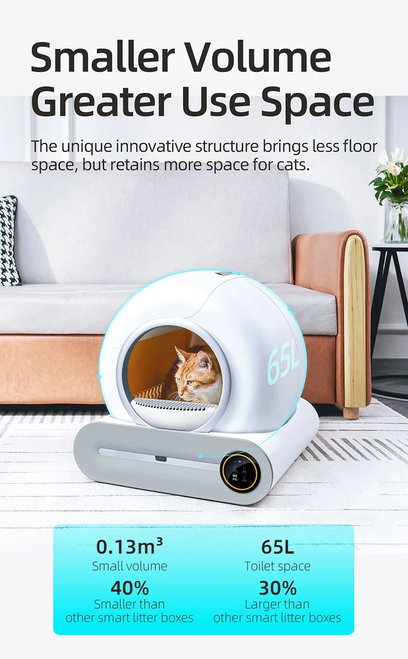 La caja de arena automática para gatos de bajo mantenimiento es lo suficientemente grande para hasta 3 gatos adultos.No te preocupes por reemplazar la arena para gatos con frecuencia, excelente para cualquier persona ocupada.La limpieza automática de la caja de arena es sencilla, solo viene en dos partes, bastante fácil de montar y desmontar, y puede lavar el cilindro de arena.Tenga en cuenta que la base no debe mojarse.