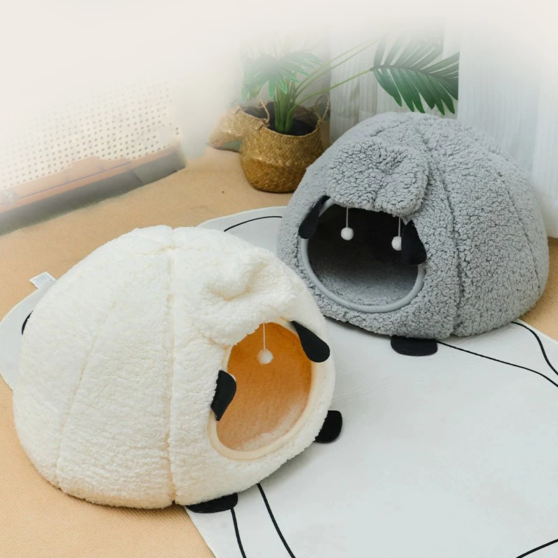 La forma del cordero es linda y única, y la textura esponjosa es fácil de amar a los gatos.